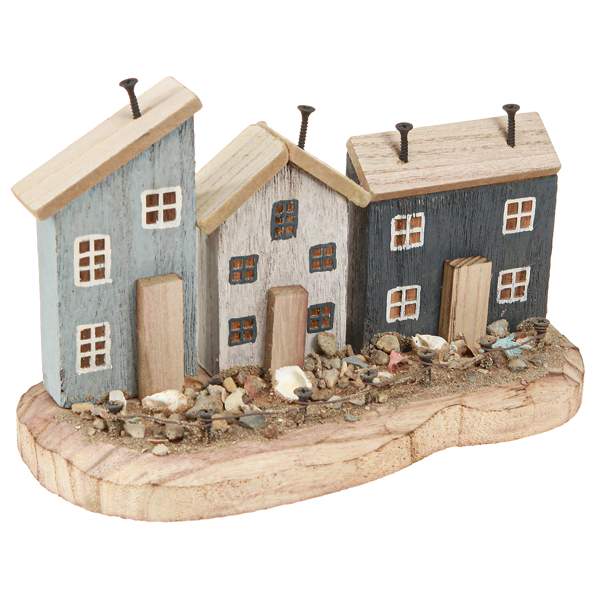 Maritime Deko Häuser Holz Fischerdorf Blau Weiß 26×16×10cm
