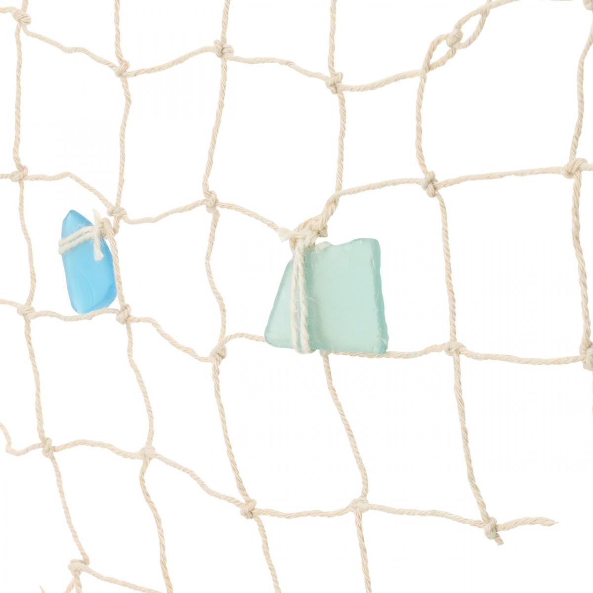 Das Deko-Fischernetz ist aus Baumwolle geknüpft, die naturbelassen in freundlichem hellen Cremeweiß daherkommt. Das Dekonetz ist zudem unregelmäßig mit echten Muscheln und buntem Seeglas besetzt. So wirkt das maritime Deko-Accessoire auf den ersten Blick, als wäre es gerade erst aus dem Wasser gezogen worden und nun Strandgut und funkelnde Schätze aus dem Meer daran haften.