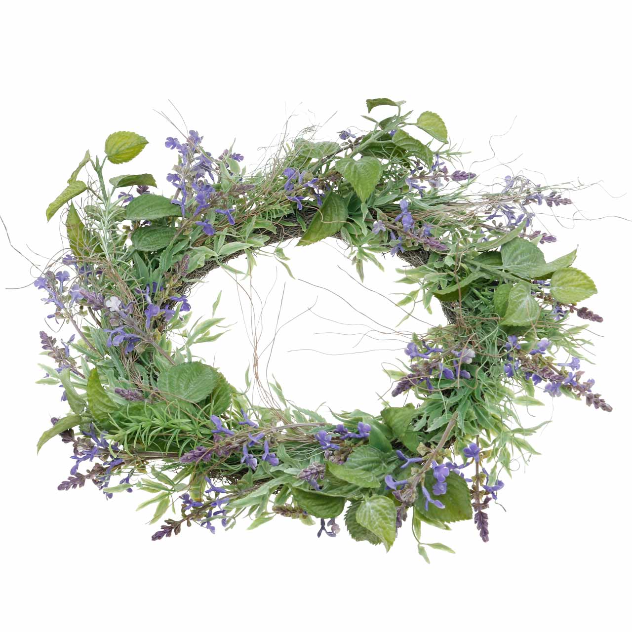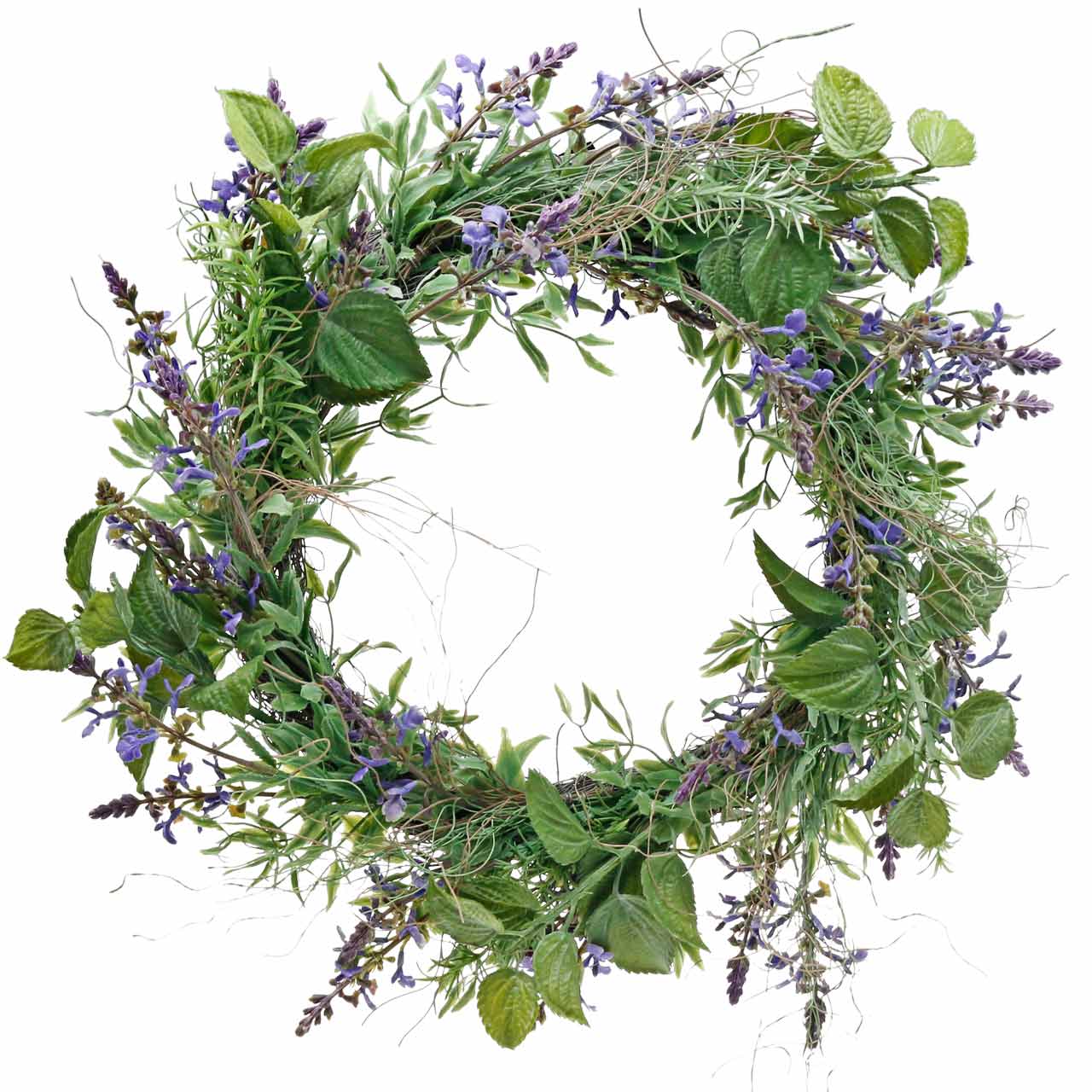 Produktname: Mediterraner Lavendelkranz Ø50cm, Künstlicher Blumenkranz mit Lavendel und Rosmarin