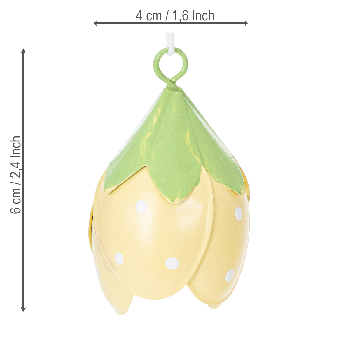 Die Metall Blüten zum Hängen sind ideal für alle, die verspielte und romantische Dekorationen lieben. Mit einer Höhe von 6 cm und einem Durchmesser von 4 cm sind sie nicht zu groß und dennoch ein stilbewusster Eyecatcher. Die zarten Farben Gelb und Grün wirken frisch und lassen sich wunderbar in verschiedenste Stile integrieren - vom Landhausstil über Shabby Chic bis hin zur klassischen Floristik. Dank der hochwertigen Verarbeitung aus Metall sind die Blüten robust und sowohl für drinnen als auch draußen geeignet. Besonders charmant wirken sie im Eingangsbereich, wo sie Gäste mit einer fröhlichen Note willkommen heißen.
