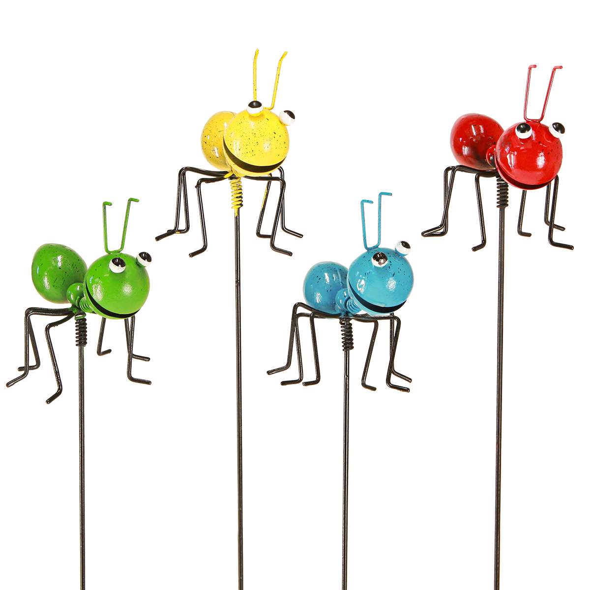 Décoration de jardin en métal Fourmi sur bâton Assortiment de 46 cm 4 pièces