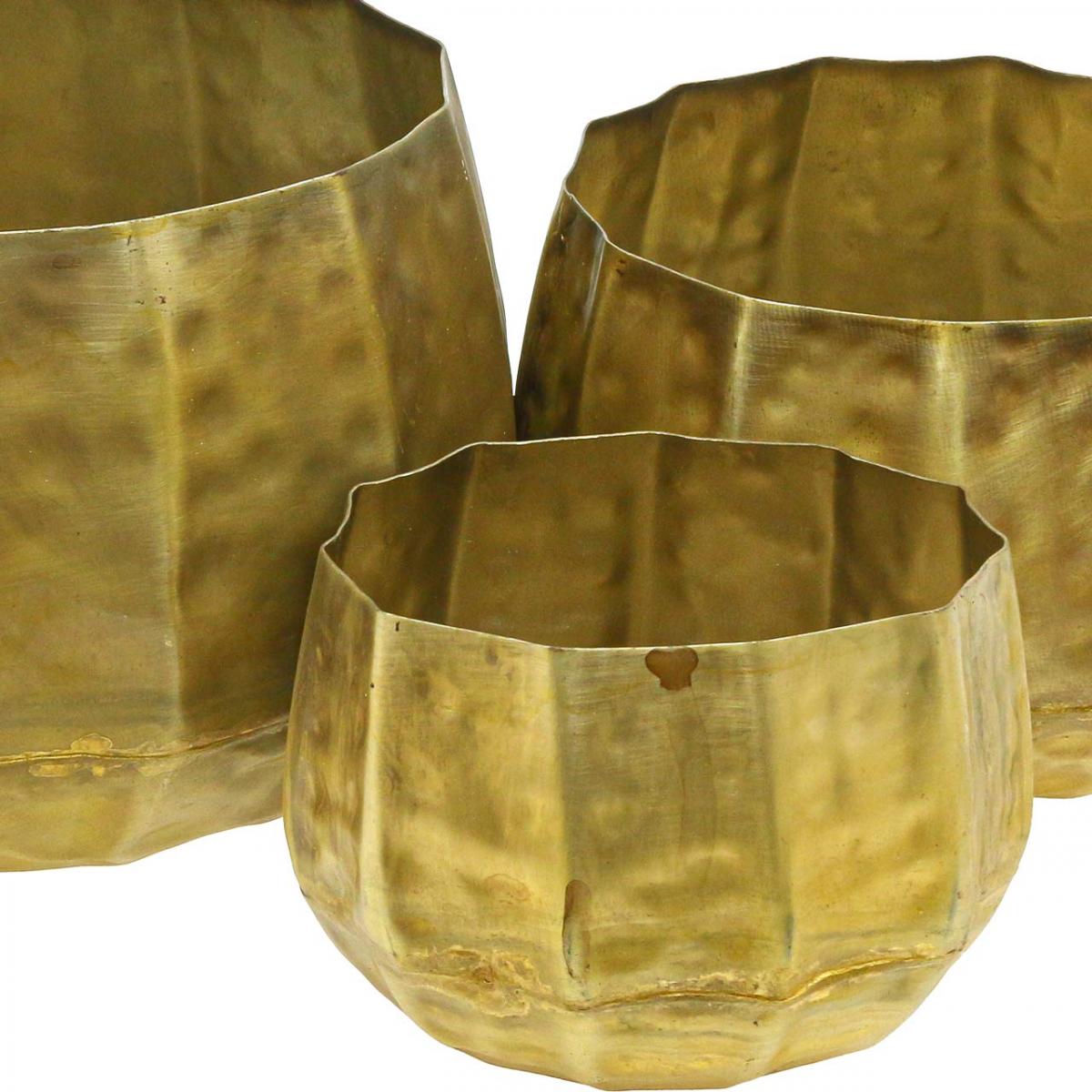 Pot de fleurs décoratif en métal laiton Ø22,5/18,5/14,5cm lot de 3