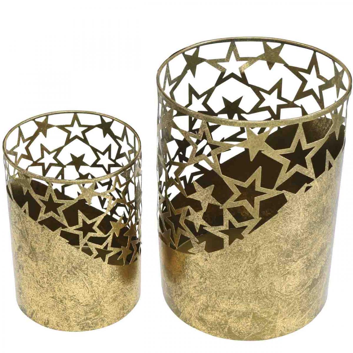Metall Windlicht Blattgold Optik Sterne Ø15cm/20cm 2er-Set