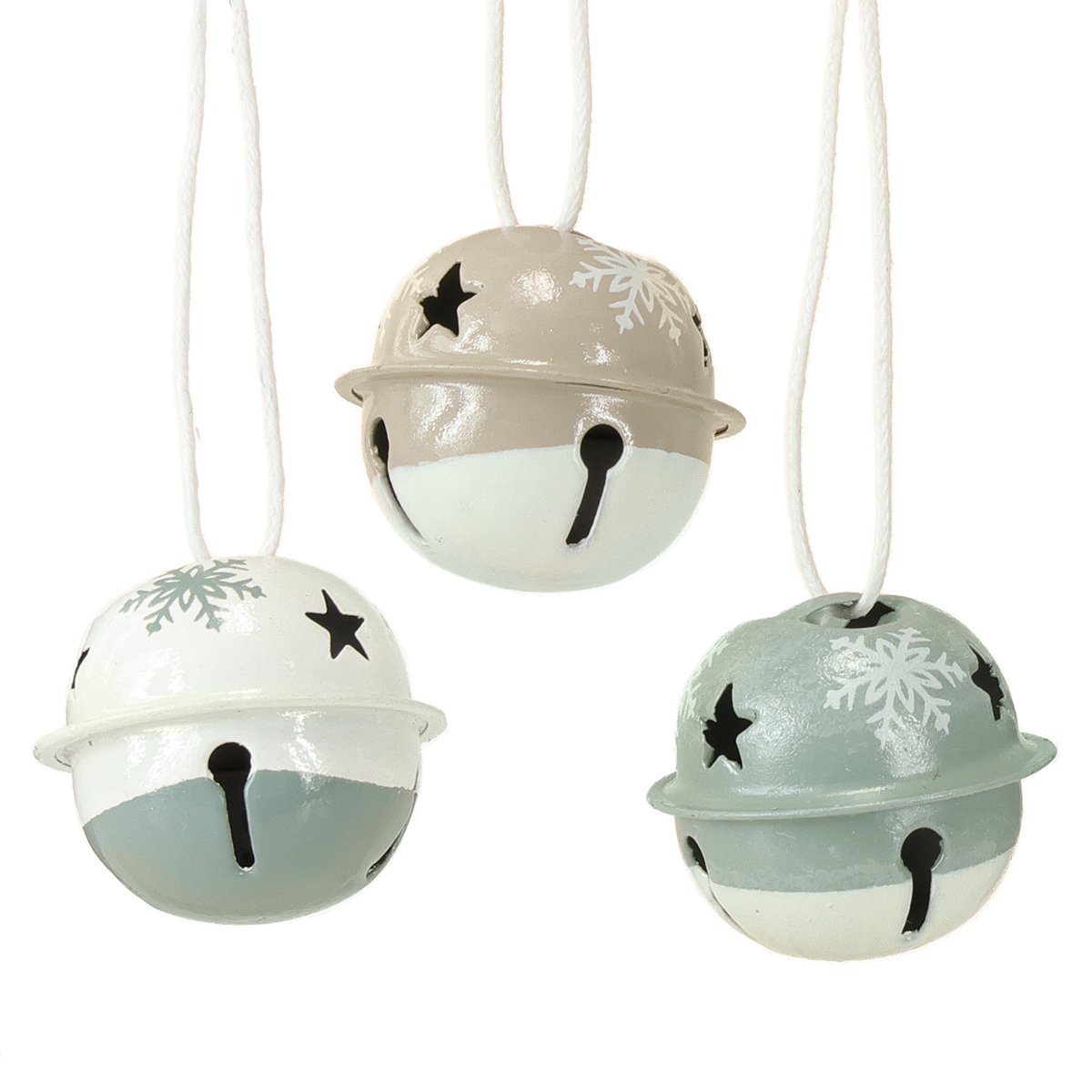Diese kleinen Schellen sind in modernen Farben weihnachtlich gestaltet: Die schönen Metallglocken sind auf weißem Grund in eisigem Mint beziehungsweise Beige jeweils zweifarbig gestaltet.
