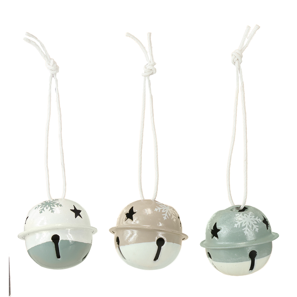 Cloches de Noël en métal Menthe Beige Ø3cm 16pcs