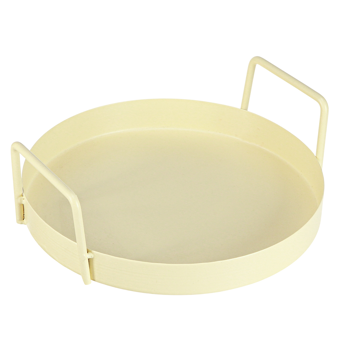 Questo vassoio rotondo con manici colpisce su tutta la linea per il suo design moderno e senza tempo e la sua funzionalità ben studiata. La delicata tonalità giallo chiaro vaniglia dona leggerezza e calore al vostro arredamento e si armonizza magnificamente con materiali naturali come il legno o il vetro. Il metallo di alta qualità garantisce stabilità e durata, rendendo il vassoio facile da pulire: basta una semplice passata.