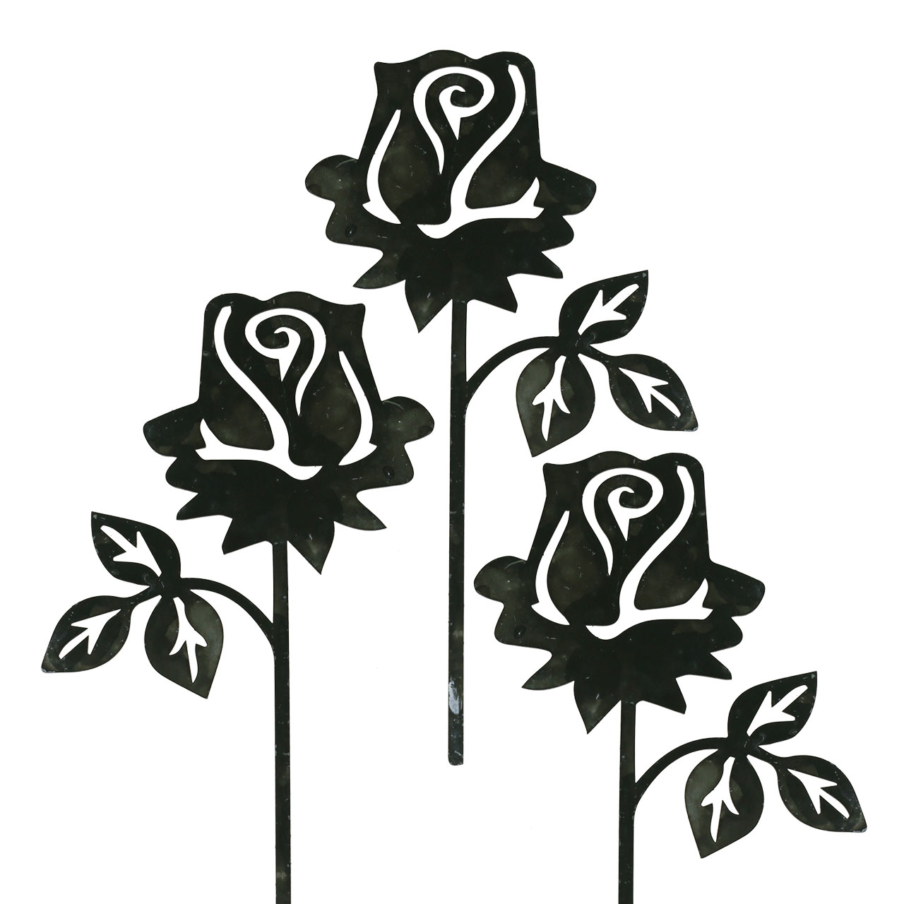 Die Rose zum Stecken besitzt eine große Blüte und einen Zweig mit drei Rosenblättern. Stecken Sie die Metall-Rose als Deko-Stecker in einen Blumentopf oder nutzen Sie sie als Dekorationselement für Gestecke, Blumenkübel oder Pflanzkörbe.