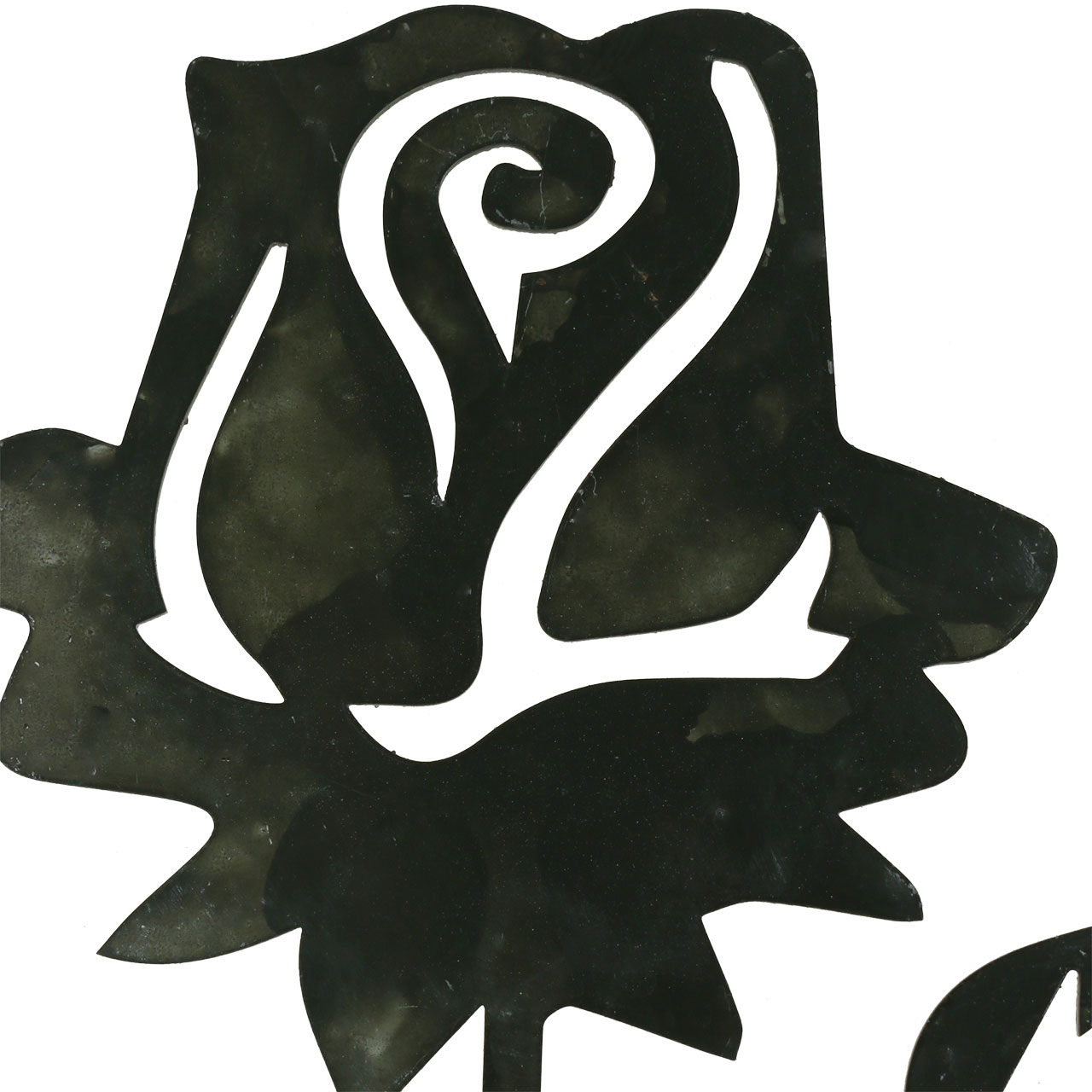 Le bouchon rose en métal noble est en argent, est partiellement oxydé et a été blanchi, ce qui signifie que le bouchon métallique a une patine foncée irrégulière et des taches blanches.Le bâton de rose a une grande fleur et une branche à trois pétales de rose. Mettez la rose en métal comme bouchon décoratif dans un pot de fleur ou utilisez-la comme élément décoratif pour des arrangements, des pots de fleurs ou des paniers de plantes.