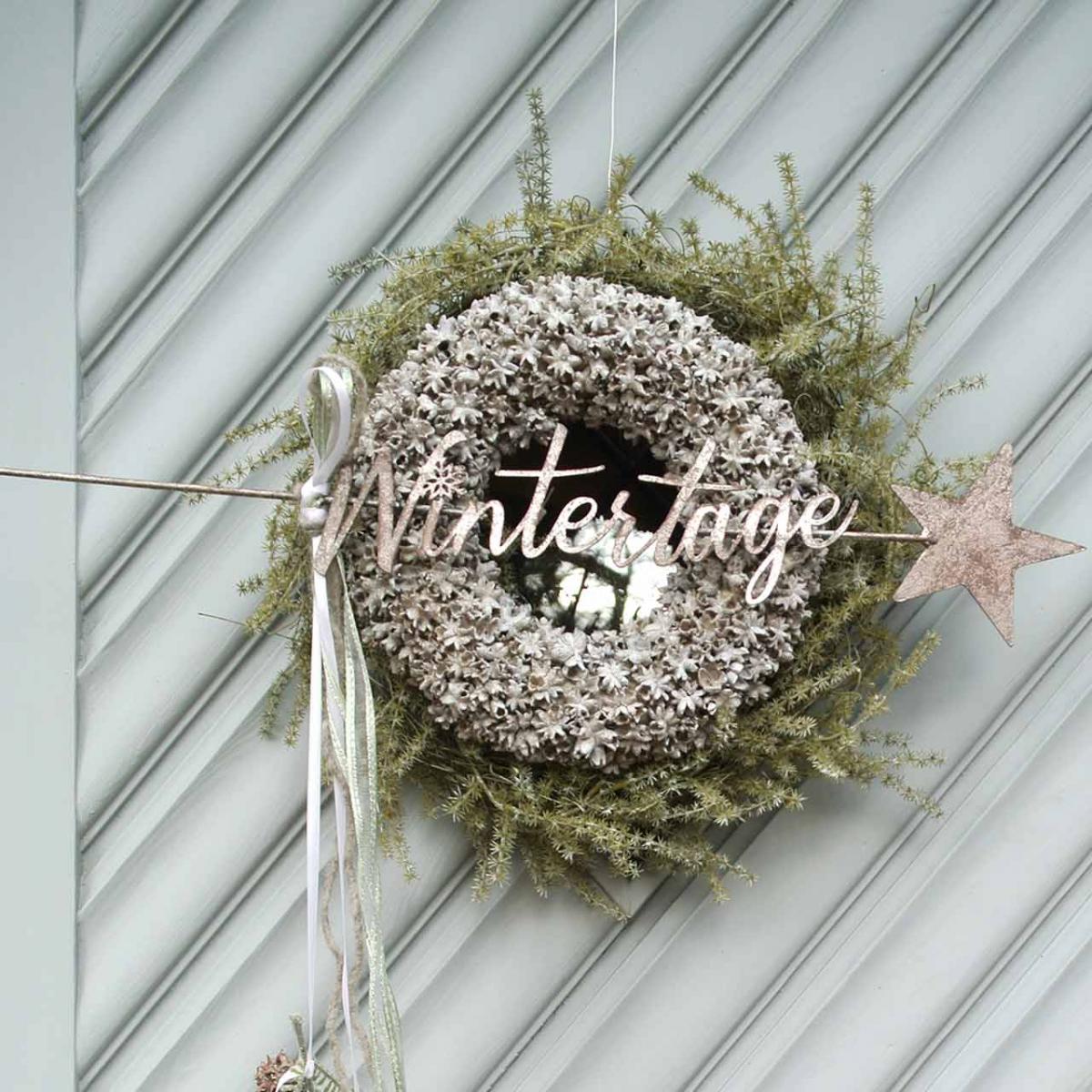 Tipp: Kombinieren Sie die Pflanzendeko mit Aufschrift “Weihnachtszeit” auch mit der silbernen Variante oder passender Deko für den Advent zum Hängen aus unserem großen Sortiment an Kranzdekoration aus Metall.