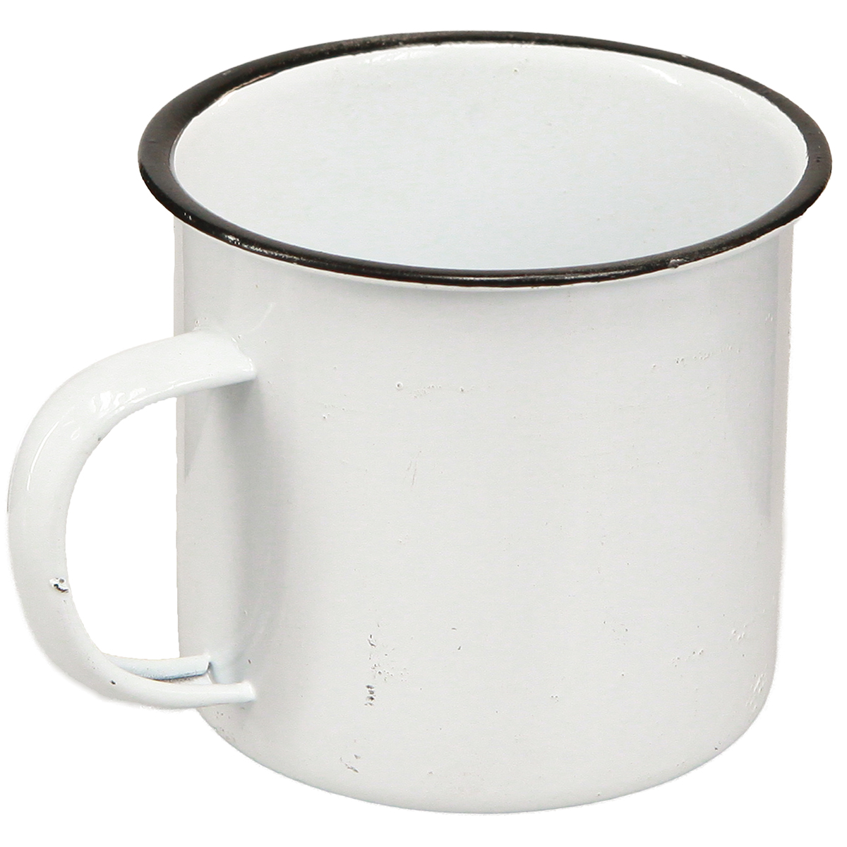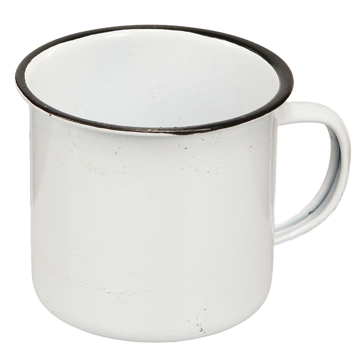 - Stilvolles Design: Emaille-Optik in Weiß mit schwarzem Rand