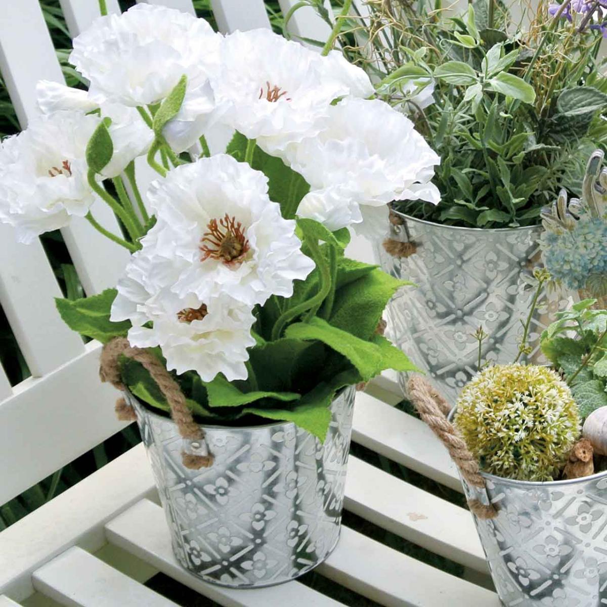 Pot en métal pour la plantation, pot de fleur avec anses, jardinière avec motif fleur Ø18cm