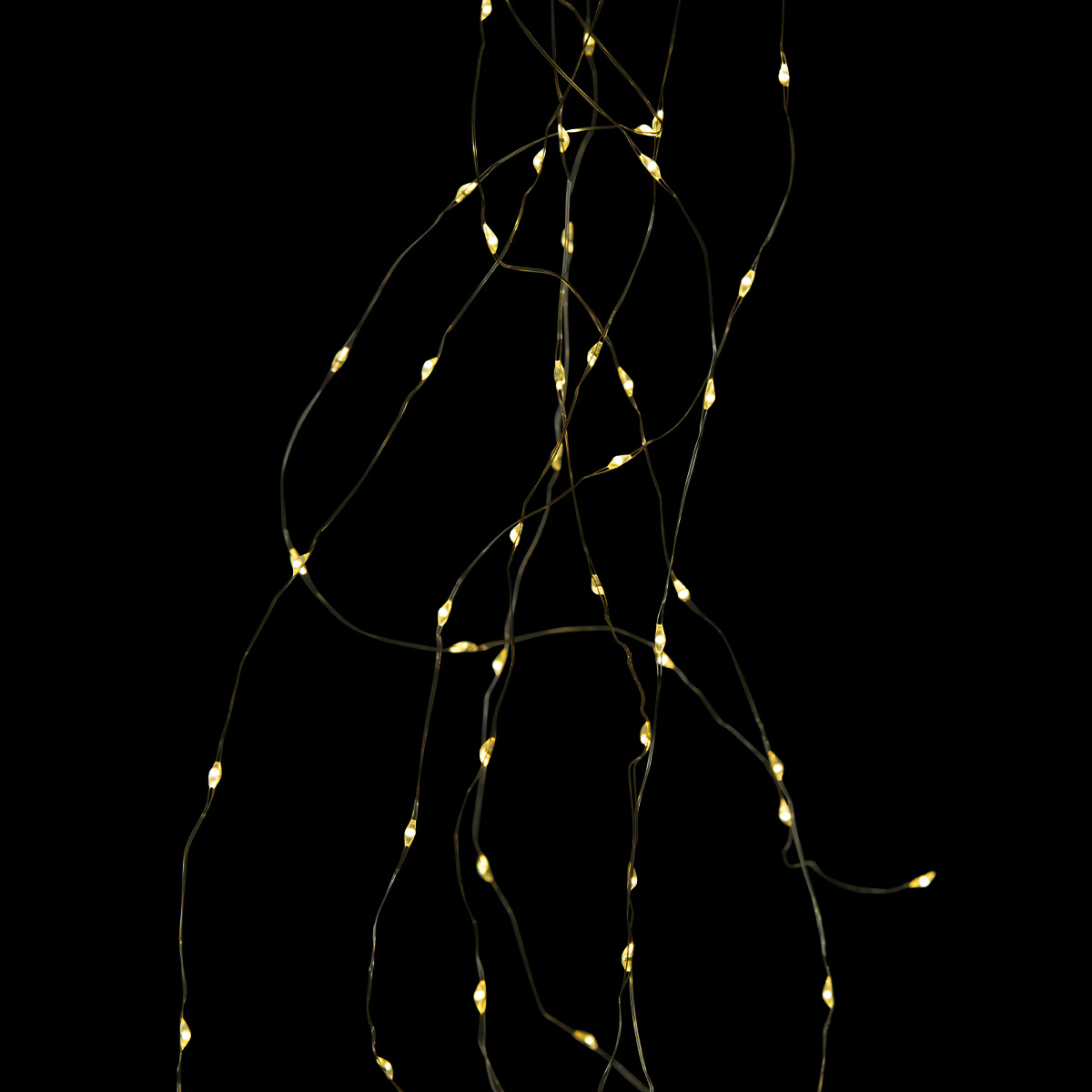Ce faisceau de 84 ampoules micro-LED vous permet d’obtenir des effets lumineux uniques et contribue à créer une atmosphère magique, en particulier pendant la période de Noël - à l'intérieur tout comme à l'extérieur. Cette guirlande en cascade est constituée de 12 branches individuelles auxquelles sont attachées des LED petites mais très lumineuses. L’originalité de cet article réside dans les brins de fils argentés et brillants qui peuvent être articulés et disposés dans n'importe quelle forme, ce qui vous permet de mettre en lumière non seulement des bouquets mais aussi toutes sortes d’objets et de compositions florales.Cette cascade étincelante peut être disposée sur un arrangement de Noël, une peinture murale ou une cage à oiseaux antique et vous évitera d’avoir à relier ensemble plusieurs autres guirlandes lumineuses pour obtenir un résultat équivalent. Un faisceau de lumières qui peut aussi être suspendu à la cheminée, au bord du toit ou sur la balustrade du balcon, pour imiter un peu un ciel étoilé. Une belle faon également d'agrémenter un arbre de Noël plus petit ou une jardinière de balcon.