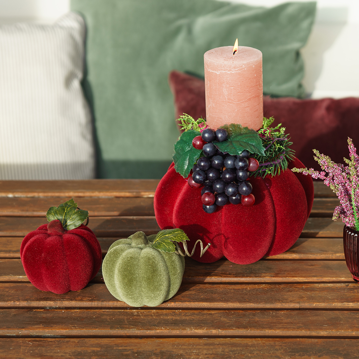 Detailreiche beflockte Herbstdeko für ein stimmungsvolles Zuhause