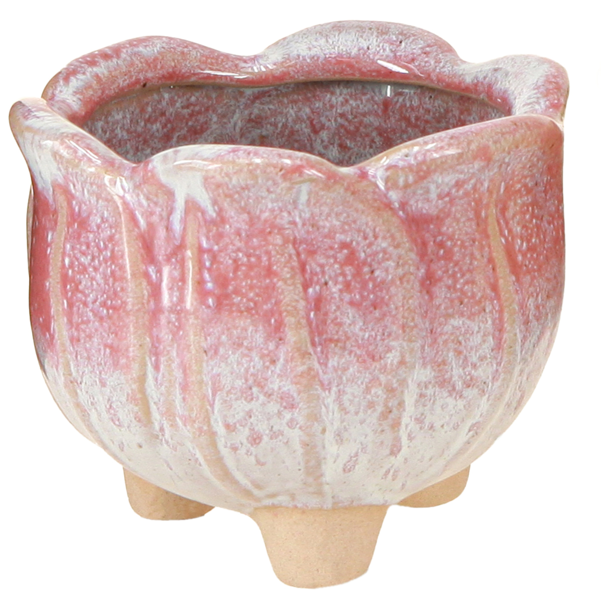Verleihen Sie Ihrem Zuhause einen Hauch von Eleganz mit unseren dekorativen Mini-Keramik-Übertöpfen, die sich perfekt als stilvolle Akzente in kleinen Räumen eignen. Diese charmanten Blumentöpfe im Mini-Format sind wie Blüten gestaltet und ideal für Sukkulenten und Mini-Kräutergärten. So bieten die Keramiktöpfe eine äußerst flexible Lösung für kreativ inspirierte Dekorationsideen im Miniaturformat. Jedes Töpfchen wurde mit Liebe zum Detail handgefertigt und zeigt die organischen, lebendigen Töne des Sommers, glasiert und geweißt, um Ihrem Wohnraum einen Hauch von Frische und Leichtigkeit zu schenken. Die kleinen Meisterwerke stehen stabil auf drei Füßchen, die mit Kunststoffschonern versehen sind, um Ihren Oberflächen optimalen Schutz zu bieten. Ob auf dem Schreibtisch im Home-Office oder als Mittelpunkt auf der Fensterbank – die vielseitigen Mini-Blumentöpfe aus Keramik setzen überall Akzente und sind echte Hingucker. Bereiten Sie Ihren Pflanzen ein stilvolles Zuhause, indem Sie die Übertöpfe vor der Bepflanzung mit Folie auskleiden, da sie nicht 100% wasserdicht sind.