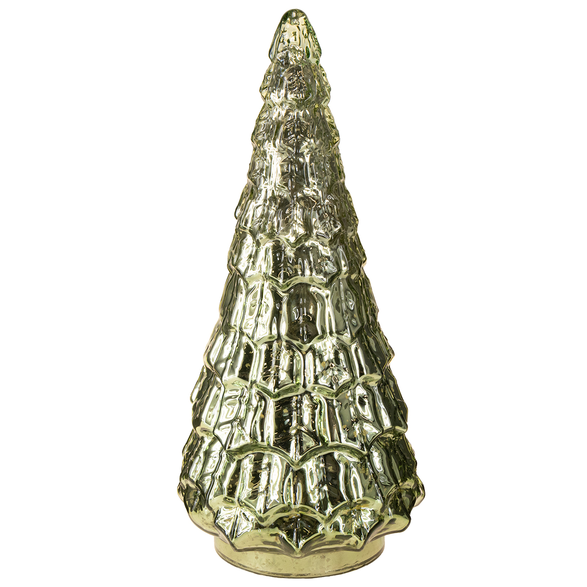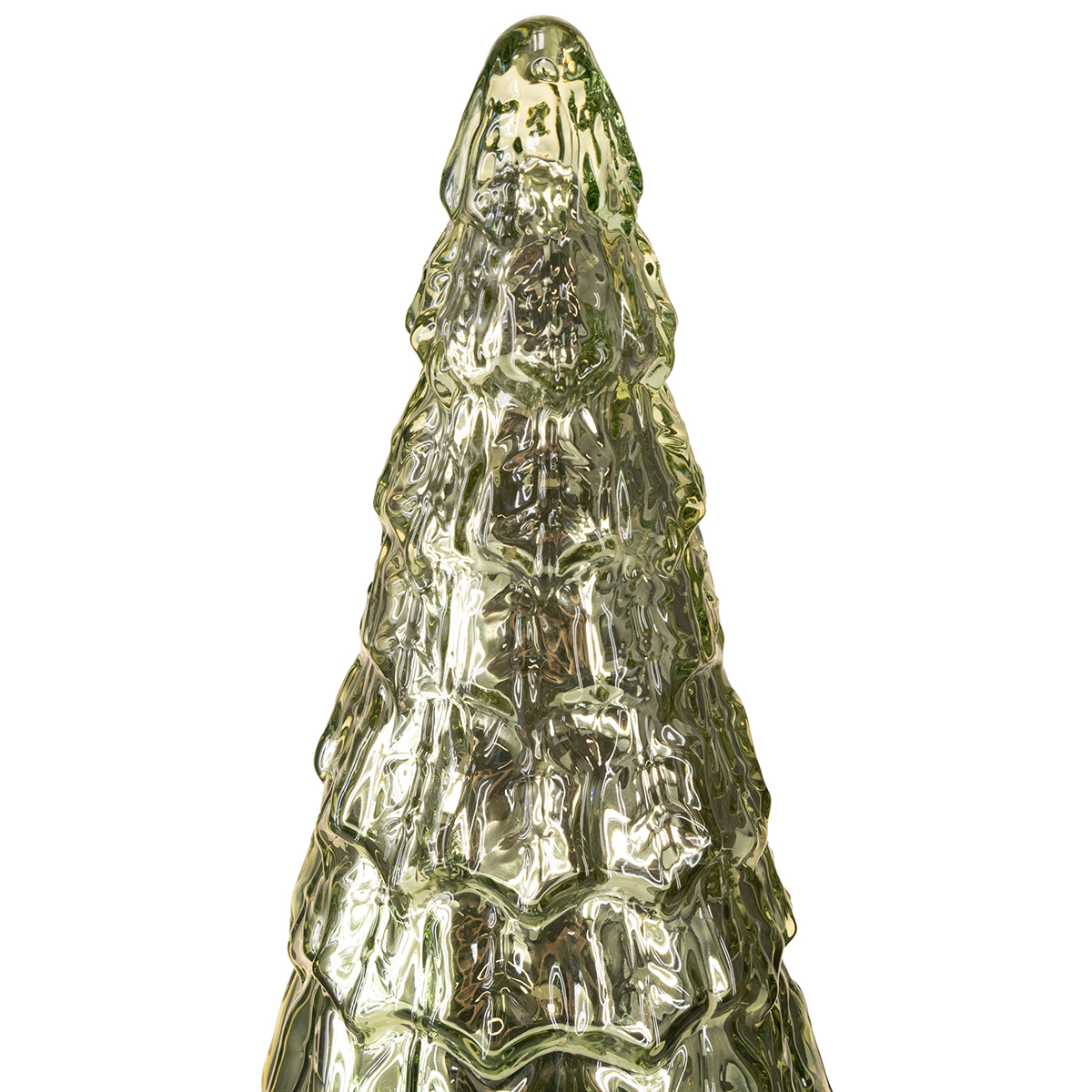 Der grüne Weihnachtsbaum mit LED begeistert nicht nur durch sein kompaktes Design, sondern auch durch die raffinierte Kombination aus plastischer Tannen-Form, Material und Lichtspiel. Der Baum besteht aus Glas und erhält durch die Vintage-Farbabtragungen goldene Lichtakzente, die in Kombination mit dem silbrig-grünen Schimmer der Grundfarbe eine atemberaubende Optik erzeugen. Obendrein steht er auf einem stabilen Kunststoffsockel mit Batteriefach, sodass er flexibel überall platziert werden kann. Das batteriebetriebene LED-Licht sorgt für einen gleichmäßigen, warmen Schein, der selbst in die dunkelsten Wintertage ein stimmungsvolles Licht bringt und Behaglichkeit ausstrahlt. Perfekt, um in verschiedenen Einrichtungsstilen wie Shabby Chic, Landhausstil oder klassischem Vintage-Look eingesetzt zu werden!