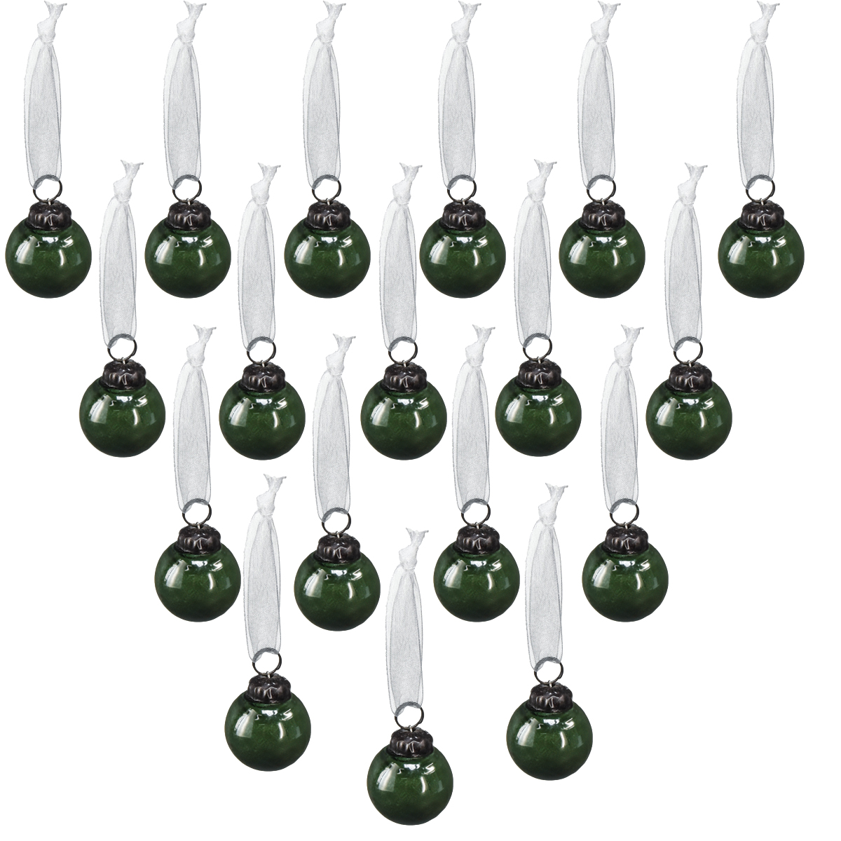 Mit den Mini-Weihnachtskugeln in Dunkelgrün bringen Sie Ihre weihnachtliche Dekoration auf das nächste Level. Die kleinen Weihnachtskugeln in Grün sind die ideale Wahl für alle, die Wert auf detailreiche und hochwertige Glaskugeln legen. Durch ihre Größe von 3cm eignen sich diese speziell auch für kleinere Bäume oder als Zusatz zu größeren Kugeln. Auch am Türkranz sehen die grünen Kugeln wunderschön aus.