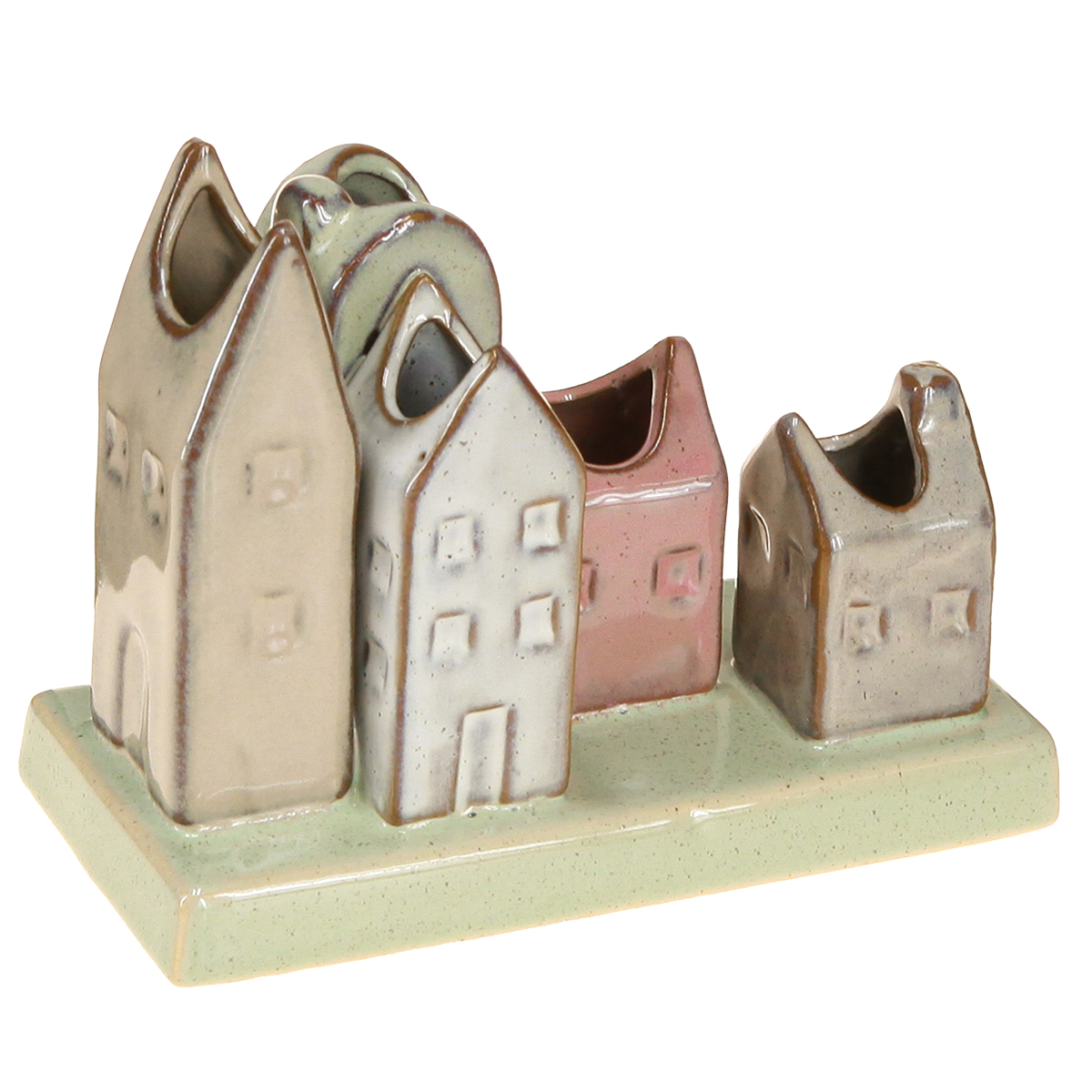 Produktname: Minivasenset bunte Häuser zur Tischdekoration 14cm