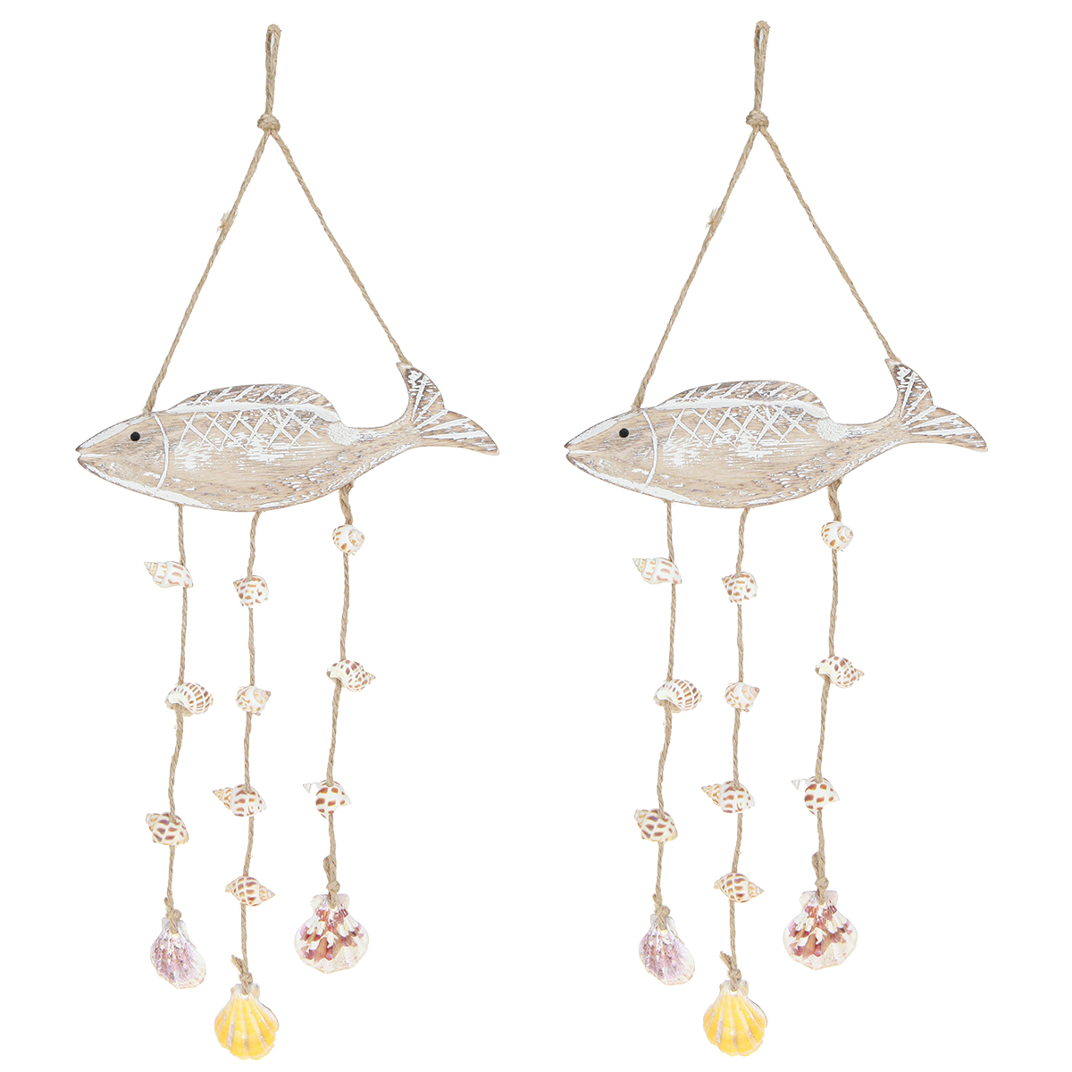 Mobile Maritime Poissons Coquillages Bois Naturel Blanc L20cm 2pcs