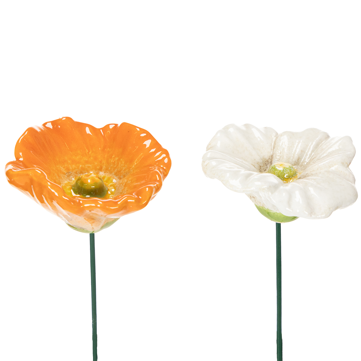 Gartenstecker Mohn Blume Keramikdeko für frühlingshafte Gartengestaltung 32cm 6St