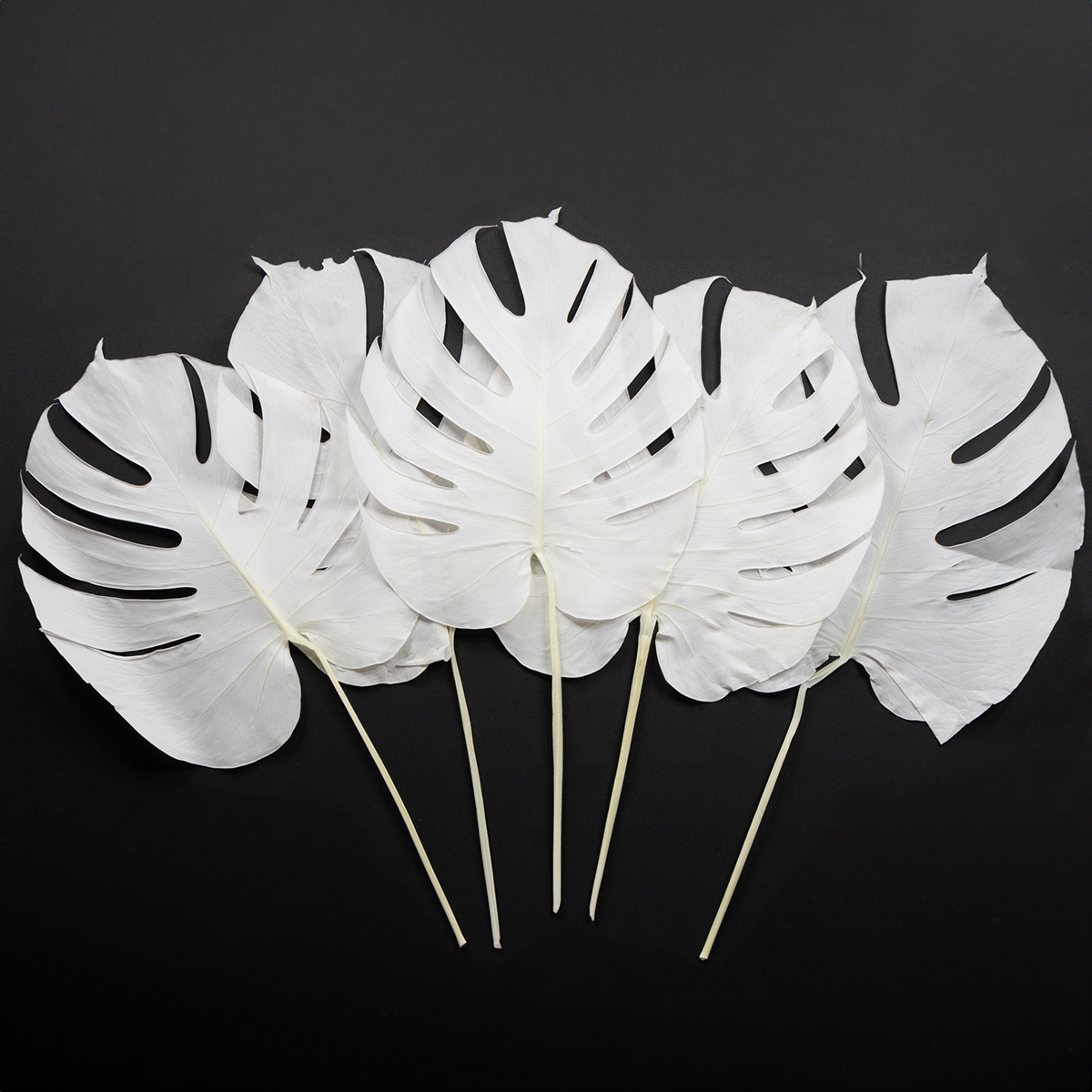 Ces feuilles de Monstera blanchies offrent d'innombrables possibilités de décoration ! Qu'elles soient utilisées comme élément central d'une composition bohème moderne, d'une élégante décoration de mariage ou pour des projets DIY minimalistes, ces feuilles soigneusement préservées de cette plante, aussi appelée plante à fromage suisse, attireront tous les regards par leur délicat blanc crème.