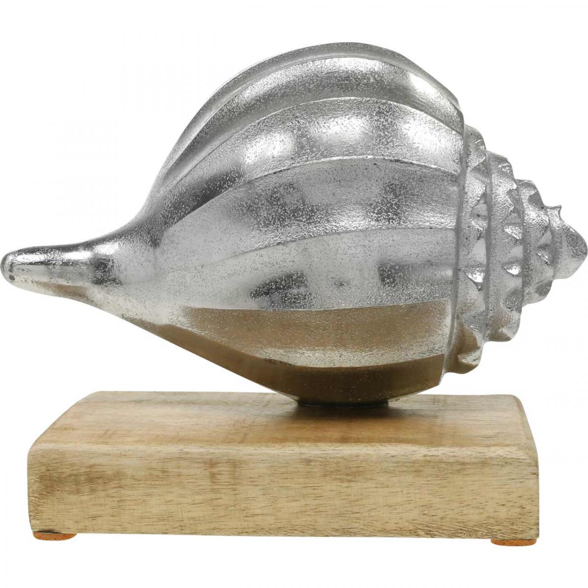 Produktname: Muschel aus Metall, maritime Deko zum Stellen Silbern, Naturfarben H15cm B18,5cm