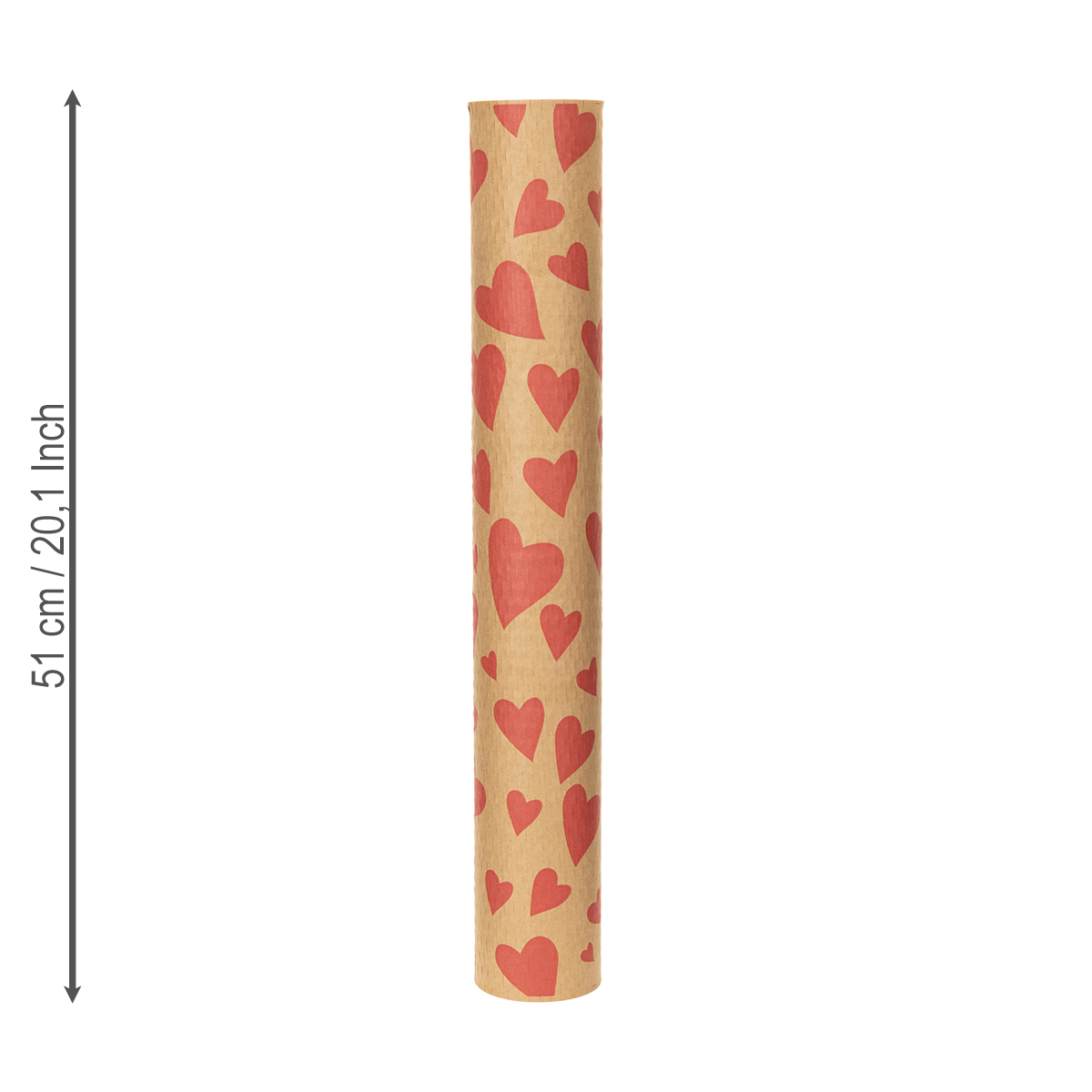 Notre papier cadeau écologique aux tons chauds de rouge et de brun naturel est bien plus qu'un simple emballage. Mesurant 25 mètres de long et 51 centimètres de large, il offre suffisamment de matière pour emballer des cadeaux de toutes tailles. Les charmants cœurs, associés à la couleur naturelle du papier, apportent une touche de romantisme et d'élégance à tous vos présents. Que vous recherchiez un emballage cadeau original pour des compositions florales, des projets de bricolage ou un matériau de protection, ce papier est incroyablement polyvalent !