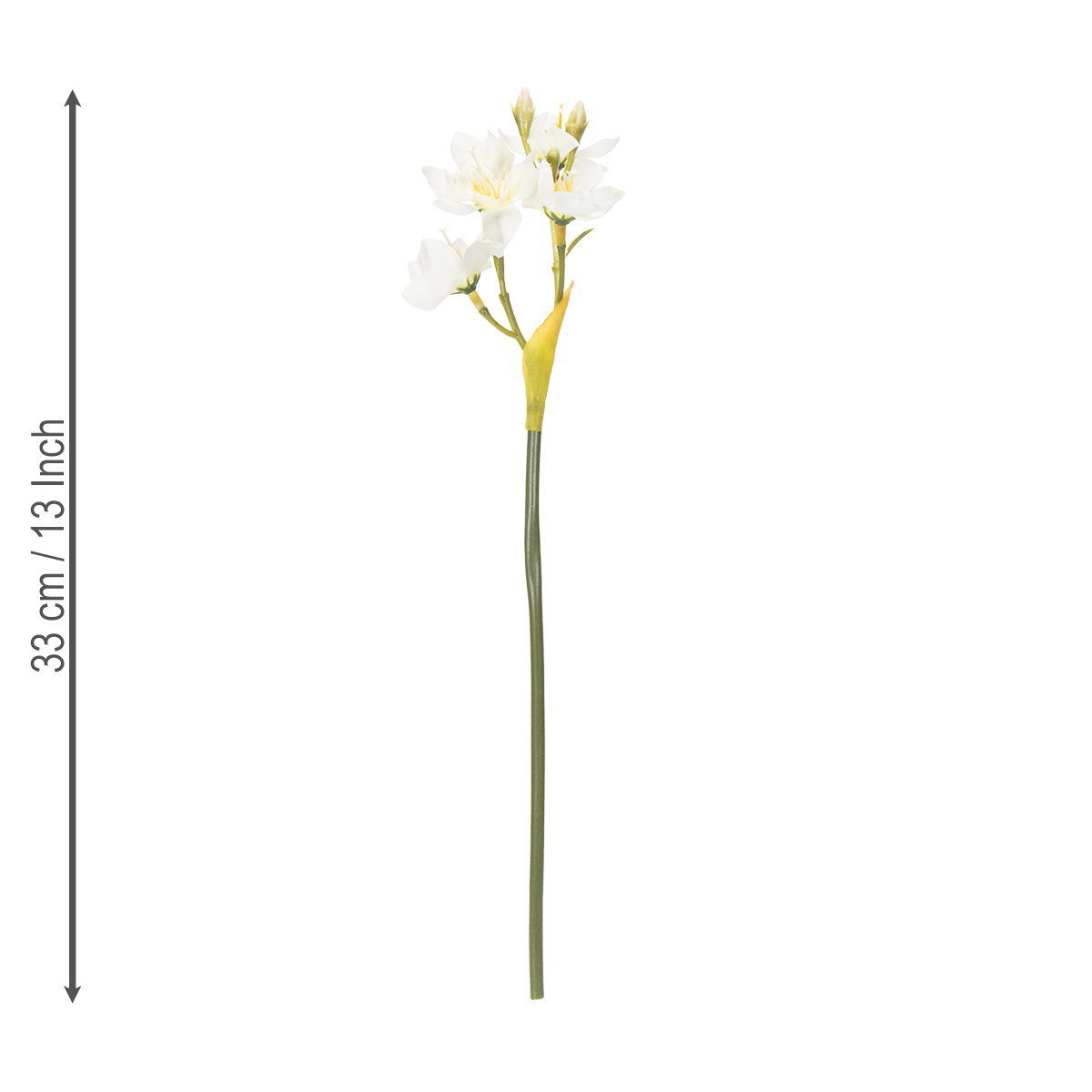 Der perfekte Akzent für Ihre Hochzeit oder saisonale Blumendekoration: Unser Narzissenzweig vereint Schönheit und praktische Vielseitigkeit. Stellen Sie sich vor, wie diese kunstvoll gestalteten weißen Blüten Ihre Tischdekoration ergänzen oder einen romantischen Brautstrauß zaubern. Ihre Gäste werden begeistert sein! Mit einer Länge von 33 cm und einer naturgetreuen Gestaltung wirken diese künstlichen Narzissen wie frisch gepflückt – und das ganz ohne Pflege.