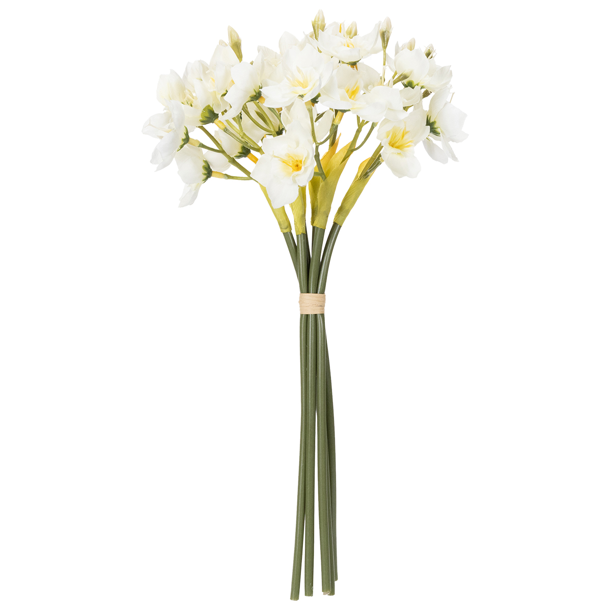 L'accessoire idéal pour sublimer votre mariage ou vos décorations florales saisonnières : notre branche de jonquille allie beauté et praticité. Imaginez comme ces fleurs blanches, confectionnées avec art, embelliront votre table ou composeront un bouquet de mariée romantique. Vos invités seront conquis ! Mesurant 33 cm de long et d'un réalisme saisissant, ces jonquilles artificielles semblent tout juste cueillies, sans le moindre entretien.