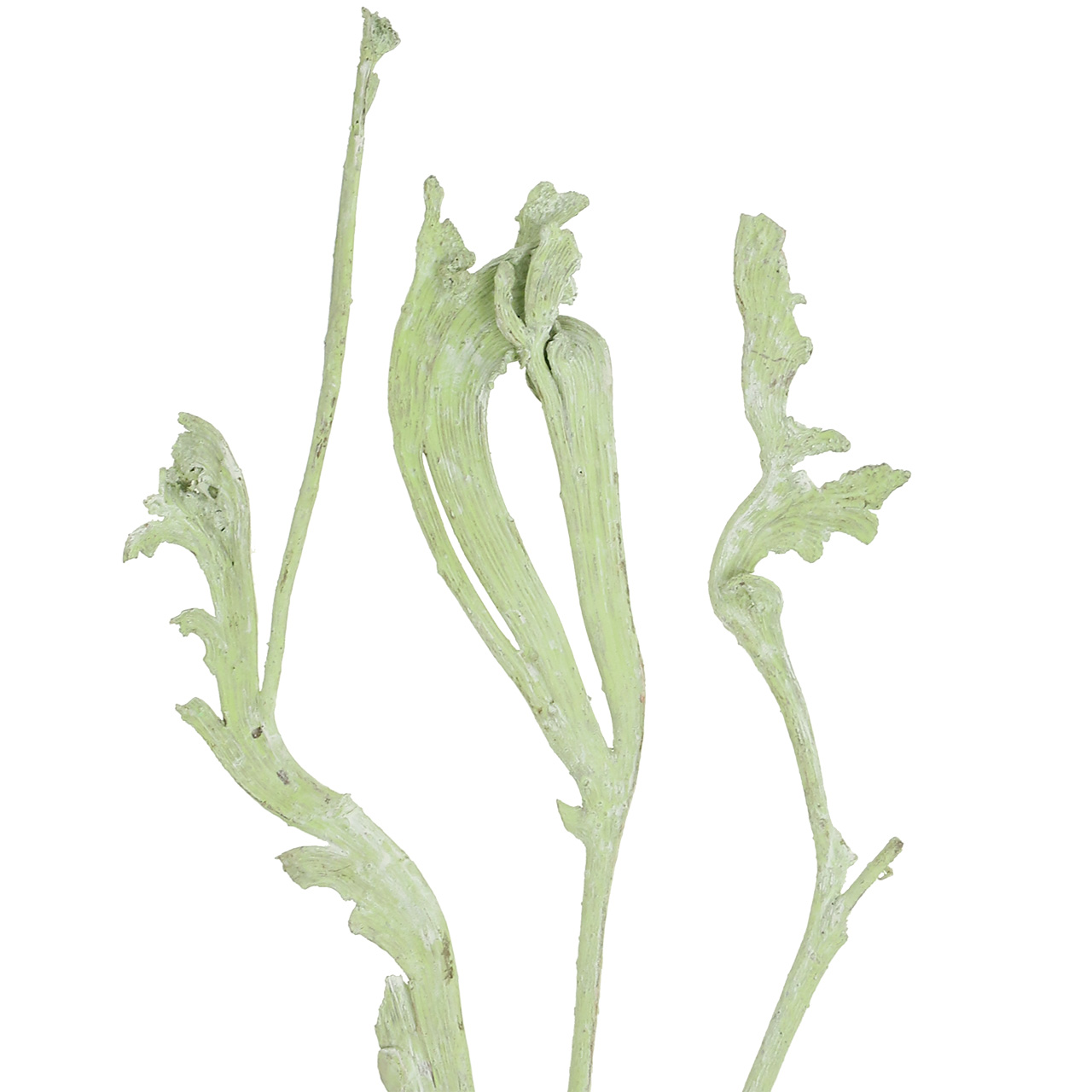 Mit diesem Natraj- beziehungsweise Geweihholz-Mix erhalten Sie in einer Kunststoff-Verpackung 10 apfelgrüne, weißgewaschene Zweige, deren Länge etwa zwischen 20 und 65 Zentimetern variiert.