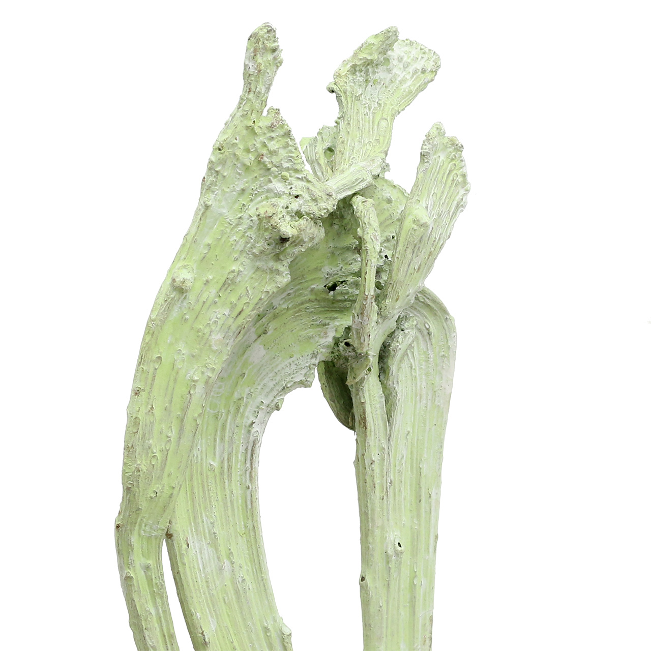 Ce mélange de bois de cervidés connu aussi sous le nom indien de „Natraj“ est en fait composé de morceaux de bois exotiques qui ont été teintés en vert pomme puis légèrement blanchis de façon à encore laisser transparaitre ici et là la couleur naturelle du bois. Il en résulte un ensemble harmonieux à la couleur très douce qui vous servira à compléter des bouquets de printemps mais également à diversifier des compositions de deuil pour leur donner un soupçon d’élégance supplémentaire.L’aspect intéressant et hors du commun de ces branches décoratives (la ressemblance de leur partie supérieure avec les bois des cerfs est à l’origine du nom qui leur a été donné) et leur coloris clair et rafraîchissant en font des composantes idéales pour les décorations murales et les arrangements de table. Les passionnés de bricolage pourront quant à eux fabriquer un cadre photo avec ses branches séchées en se servant de fil métallique pour faire tenir le tout. Une façon insolite de donner une touche exotique à une décoration intérieure pour un bois de décoration que vous n’hésiterez pas non plus à présenter dans un grand vase de sol accompagné d’autres articles naturels comme les banana sticks, les coques séchées et les feuilles de palmier.