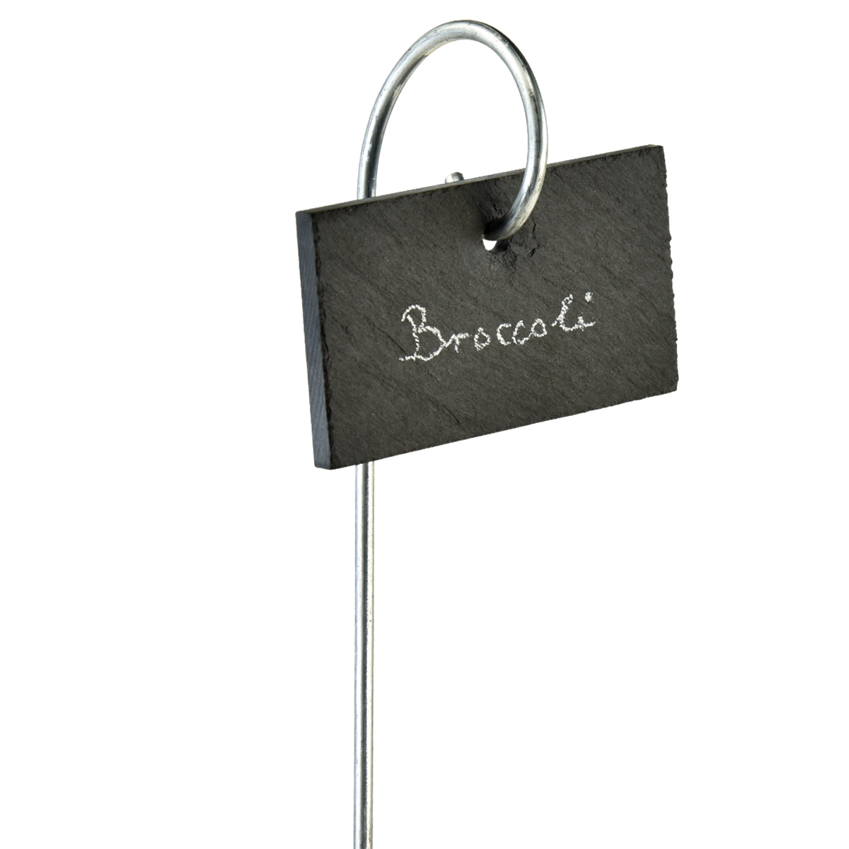 Mit dem beiliegenden Kreidestift können Sie die Pflanzenschilder aus Schiefer immer wieder neu beschriften. – Auch Gestecken oder Bepflanzungen zum Verschenken können Sie mit den Steckern aus Schiefer je nach Anlass einen Gruß mit natürlichem Touch hinzufügen.