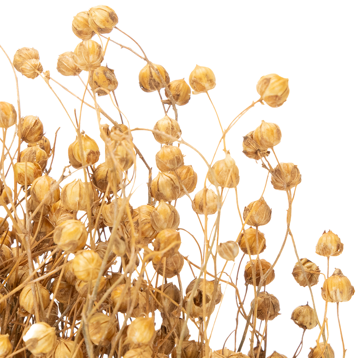 Le numerose piccole capsule rotonde dei semi di lino sono estremamente decorative allo stato naturale, rendendo il lino un elemento decorativo popolare nelle composizioni floreali secche durante tutto l'anno! Il lino secco è indispensabile nelle forniture floreali e può essere incorporato in vari modi in bouquet secchi, ghirlande naturali e anelli decorativi nel popolare stile scandinavo.