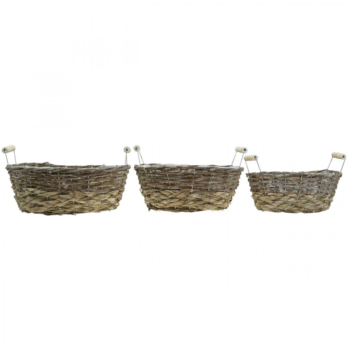 Panier naturel à planter, panier avec anses, jardinière shabby chic blanc lavé L31/27.5/24cm H12/11.5/10cm lot de 3