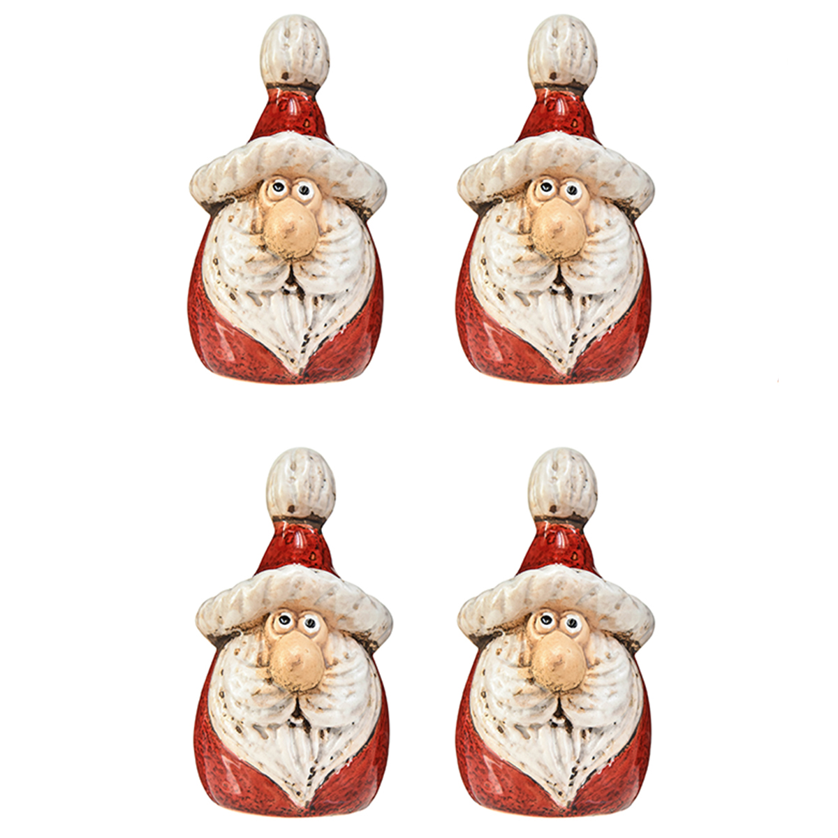 Simpatica figura di Babbo Natale in ceramica, rossa e bianca, 10 cm - perfetta decorazione natalizia - 4 pezzi
