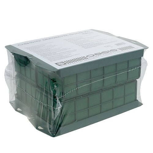 La spugna OASIS® Steckette Dekorette Grande con strisce adesive ha dimensioni da circa 29 centimetri a 12 centimetri a 8,5 centimetri. I mattoni stessi hanno all'incirca le dimensioni da 23 centimetri a 11 centimetri a 8 centimetri. La base floreale è disponibile in un pratico set di 4. Ciò significa che puoi progettare diverse composizioni floreali per un evento più grande. Questi possono anche essere attaccati in modo decorativo alle pareti.