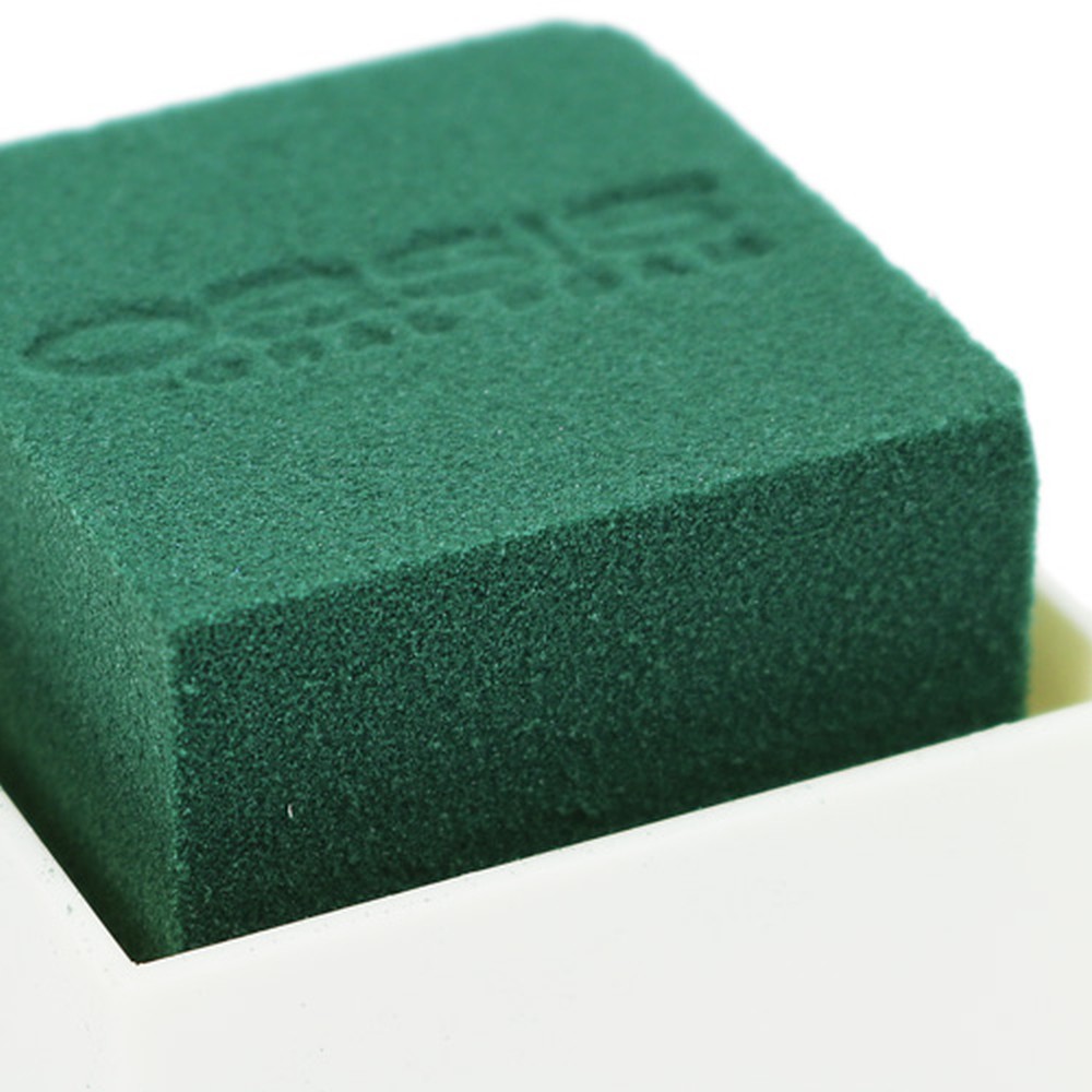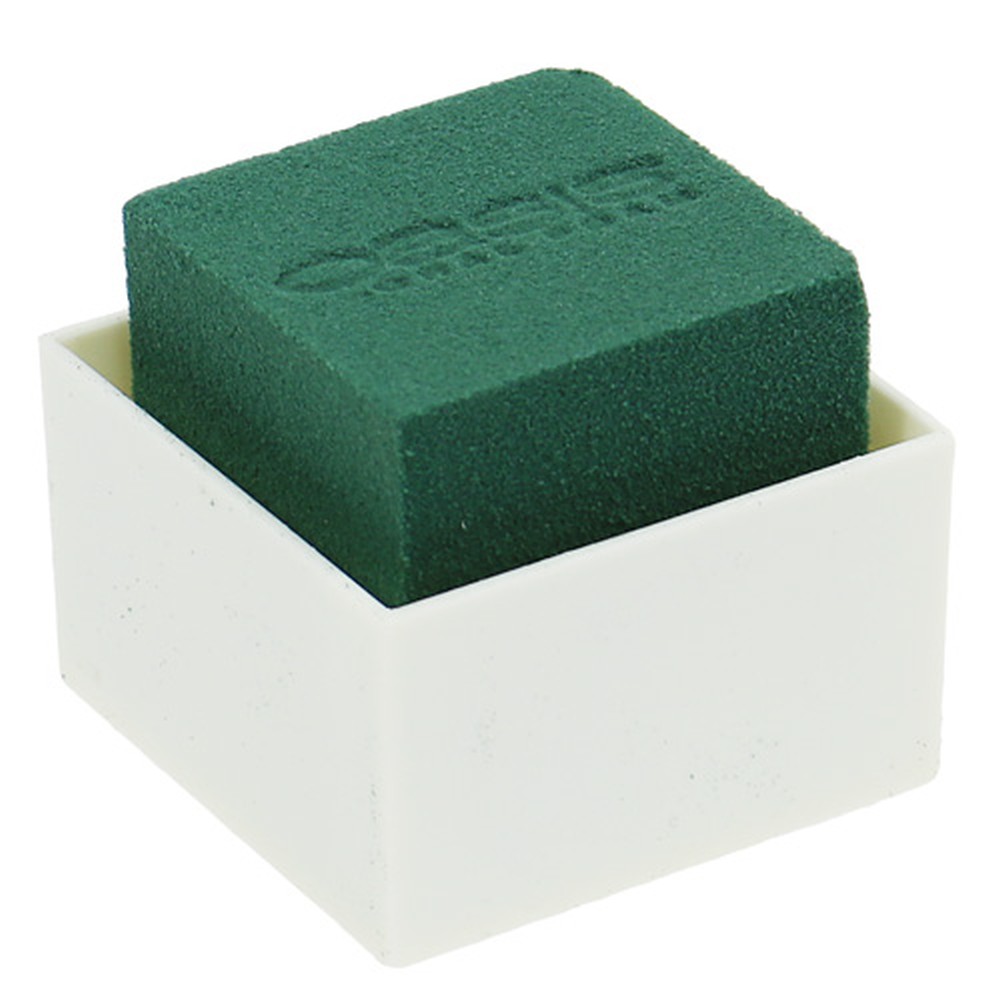 Dés de mousse florale verte incorporés dans de petite bases cubiques en plastique blanc pour des mini-compositions et arrangements floraux en fleurs artificielles ou avec des fleurs coupées. La mousse florale est fixée à la base.Taille: 6 x 6 x 5 cm