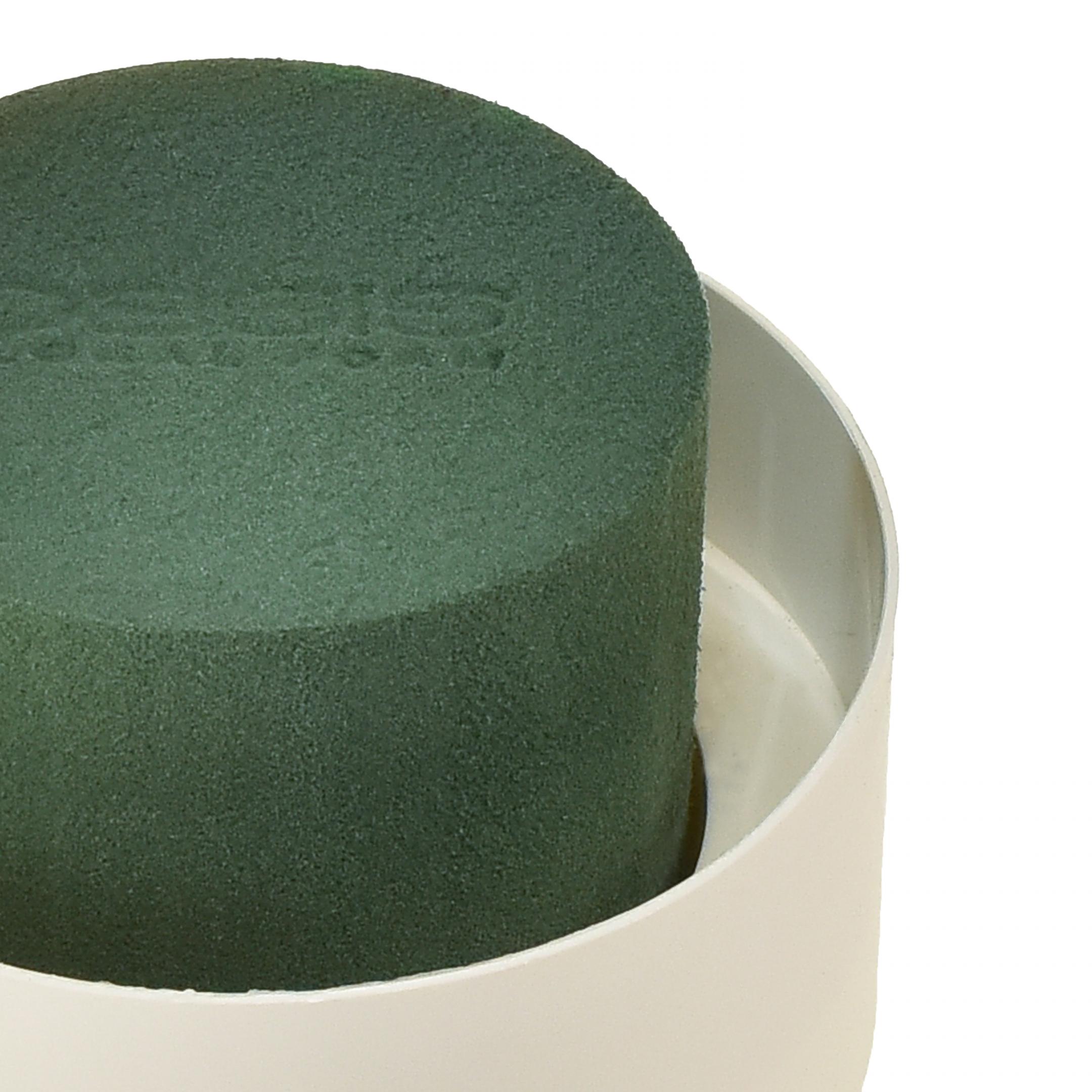 Rond de mousse mouillable verte, sur une jolie base en plastique blanc, parfait pour des créations décoratives. La mousse est fixée à la base. Idéal pour de petites compositions avec de vraies fleurs ou des fleurs artificielles.Taille: Diamètre 10cm, Höhe 7cm