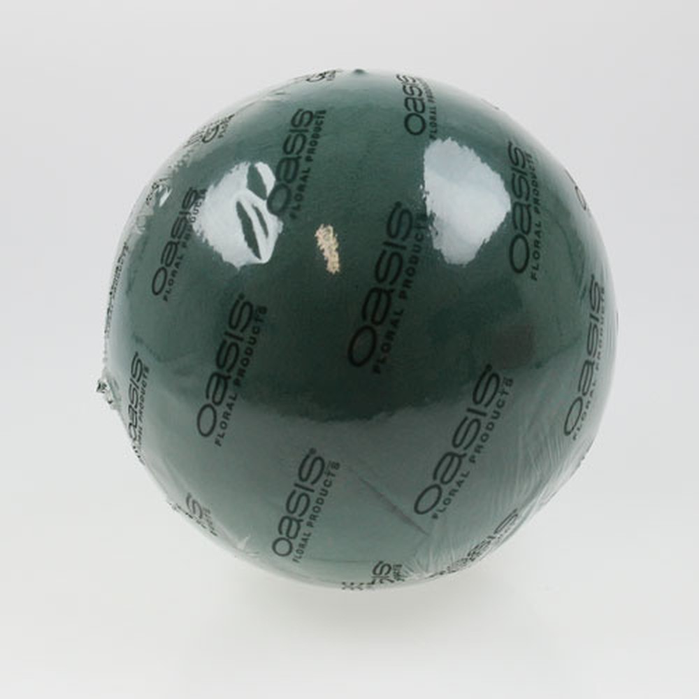 Die große Ideal Maxlife Kugel von OASIS® ist in einer Kunststofffolie eingepackt. Der Nass-Steckschaum hat einen Durchmesser von ungefähr 25 Zentimetern. Selbstverständlich können Sie die Kugel mit einem Messer ganz kreativ bearbeiten. Auch das Aushöhlen oder Ausschneiden von Gesichtern ist möglich.