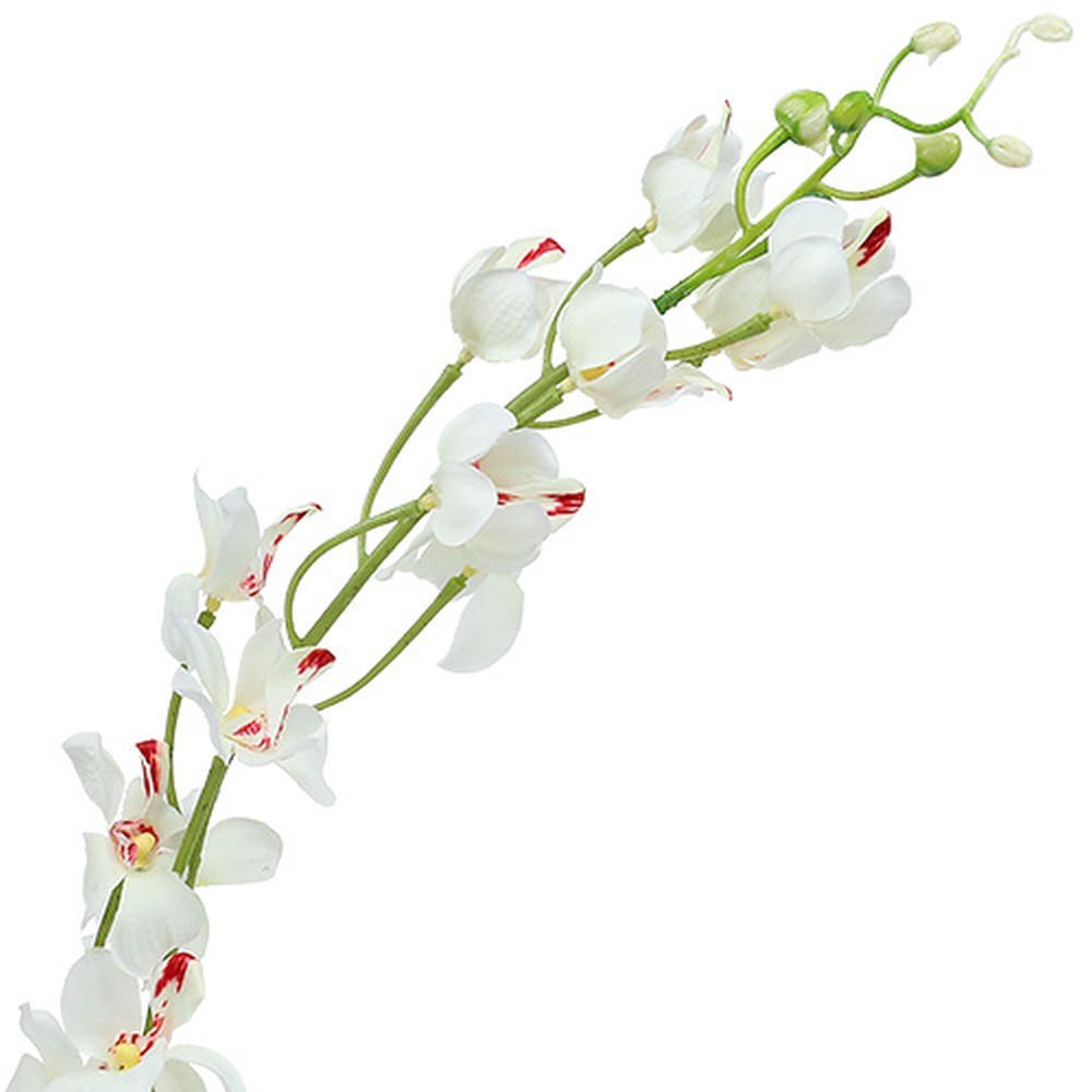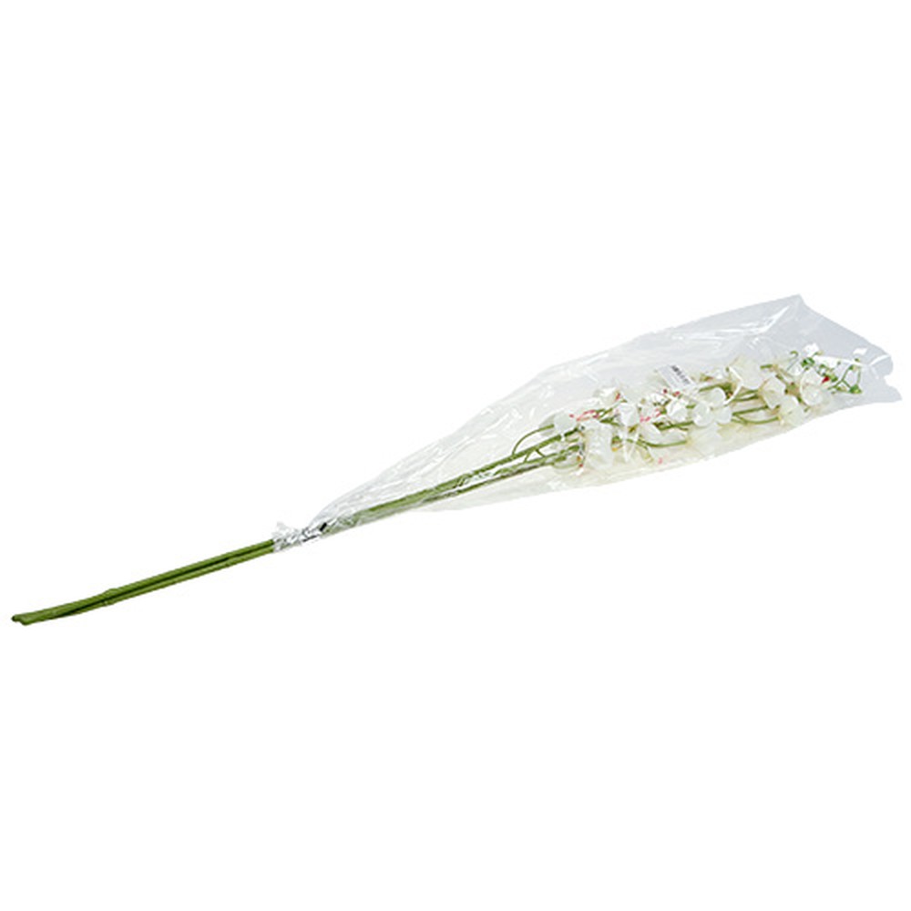Die künstliche Mokara Orchidee in Weiß wird als Bündel zu 3 Stück geliefert und hat eine Länge von ungefähr 92 Zentimetern. Der Blütendurchmesser beträgt circa 6 Zentimeter.