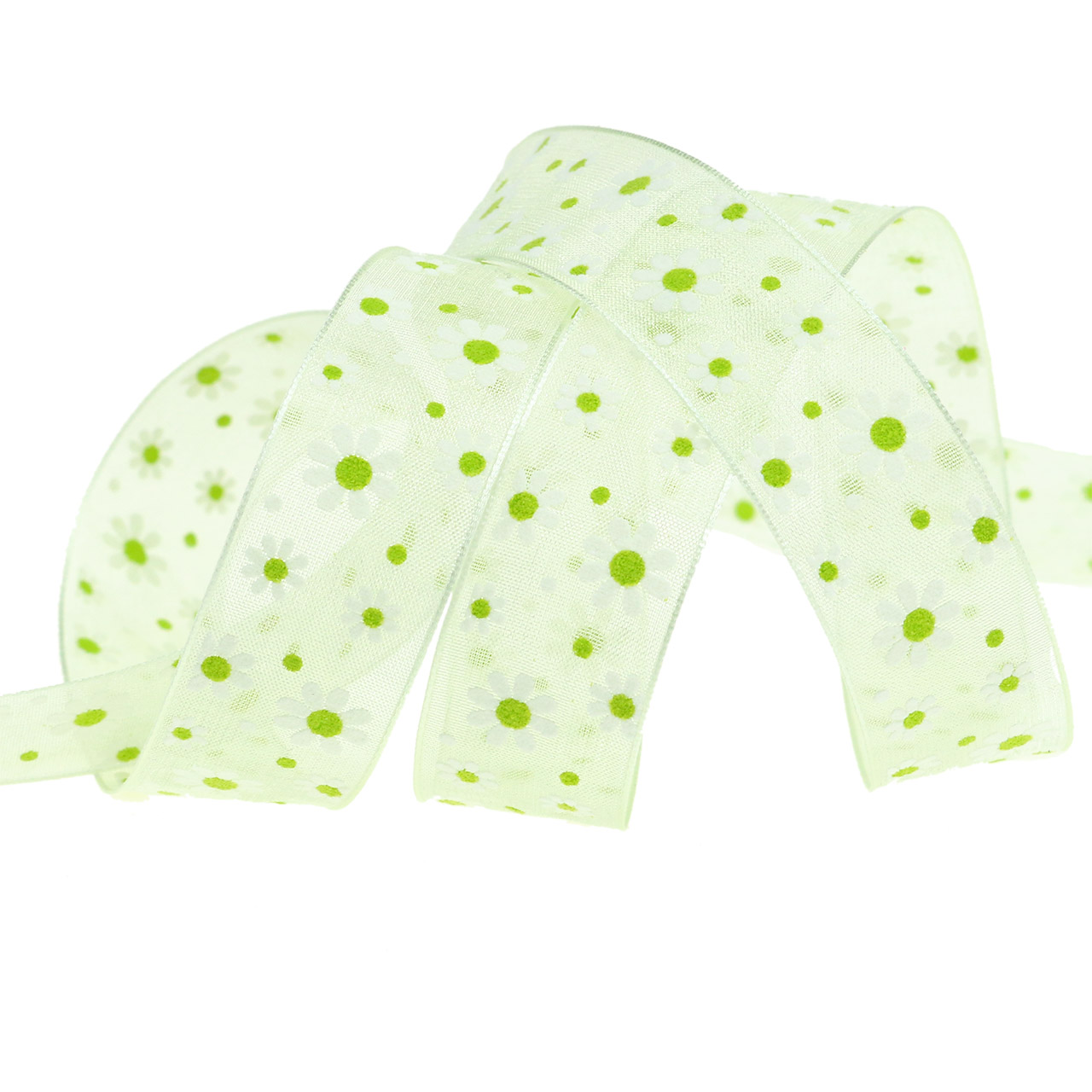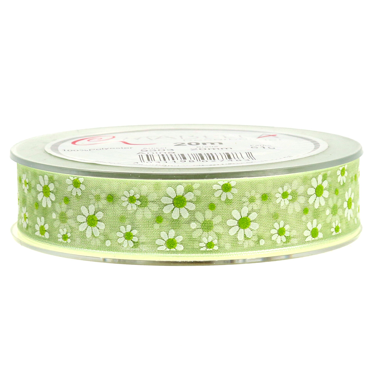 Produktname: Organzaband Grün mit Blumen 20mm 20m