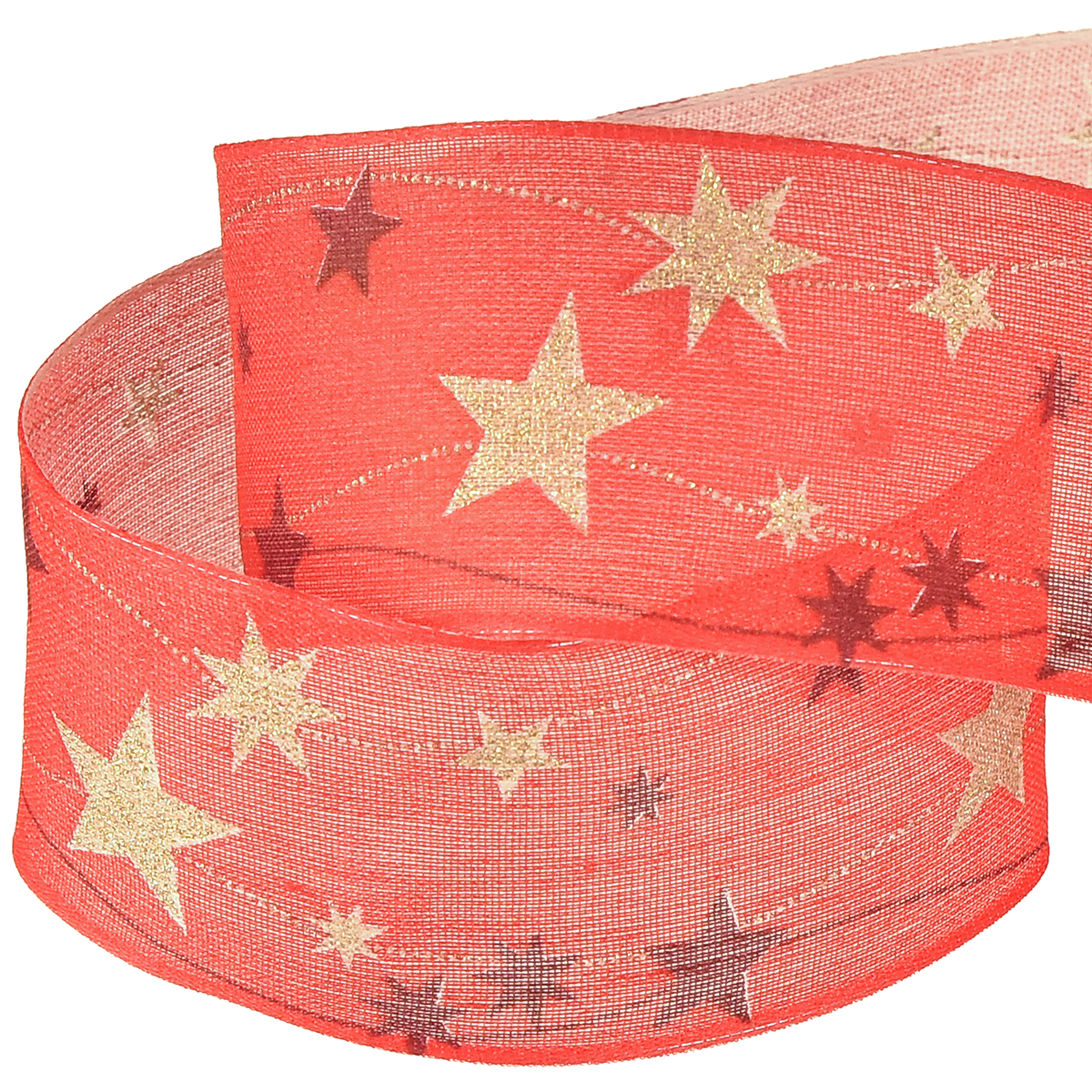 Produktname: Weihnachtsband Rot Band mit Sternen Drahtkante 40mm 15m