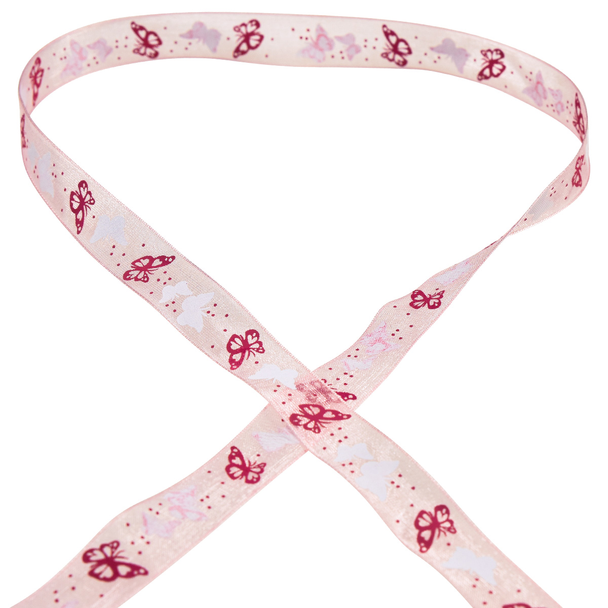 Produktname: Organzaband Schmetterling Schleifenband Rosa 15mm 20m
