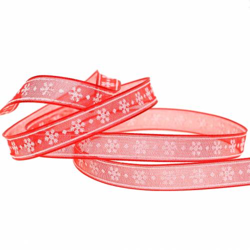 Organzaband mit Schneeflocke Rot 10mm 20m