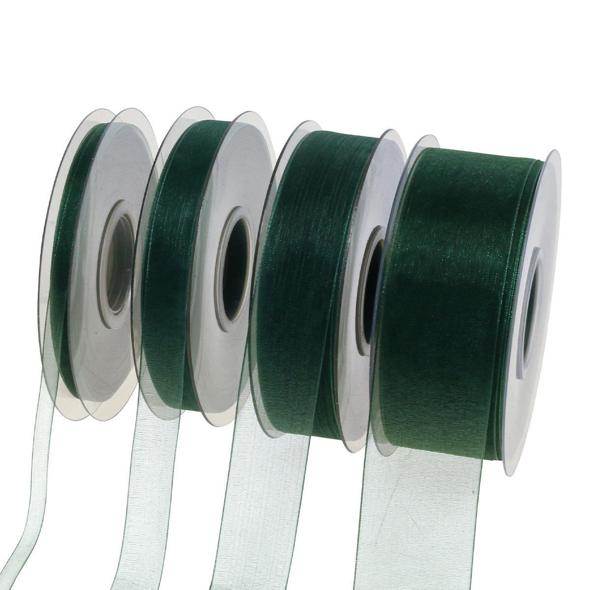 Ruban cadeau en organza vert bord tissé vert sapin 50 m