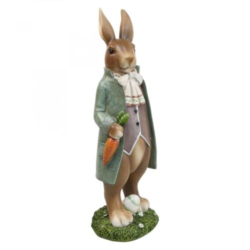 Wer nach ungewöhnlicher Osterdeko sucht, findet an diesen elegant gekleideten Deko-Hasen bestimmt Gefallen. Es handelt sich um zwei Hasen mit menschlicher Gestalt, die Kleidung aus der viktorianischen Epoche tragen.Dieses Hasenpaar hat sich besonders fein herausgeputzt: Die Hasendame hat ein Kleid mit weitem Rock und einen hübschem Kragen an und auf dem Kopf trägt sie einen Hut mit weiter Krempe und feiner Schleife. Der Hasengentleman ist mit Weste, Frack und einem fürstlichen Halstuch bekleidet.