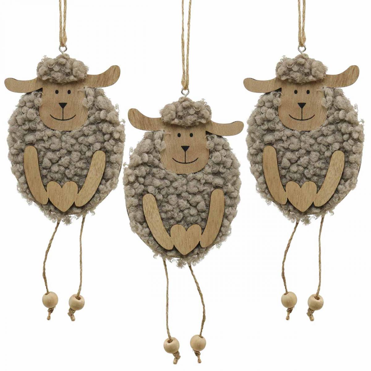 Osterdeko Schaf Hänger Holz Flauschig 8,5×1,5×20cm 6St