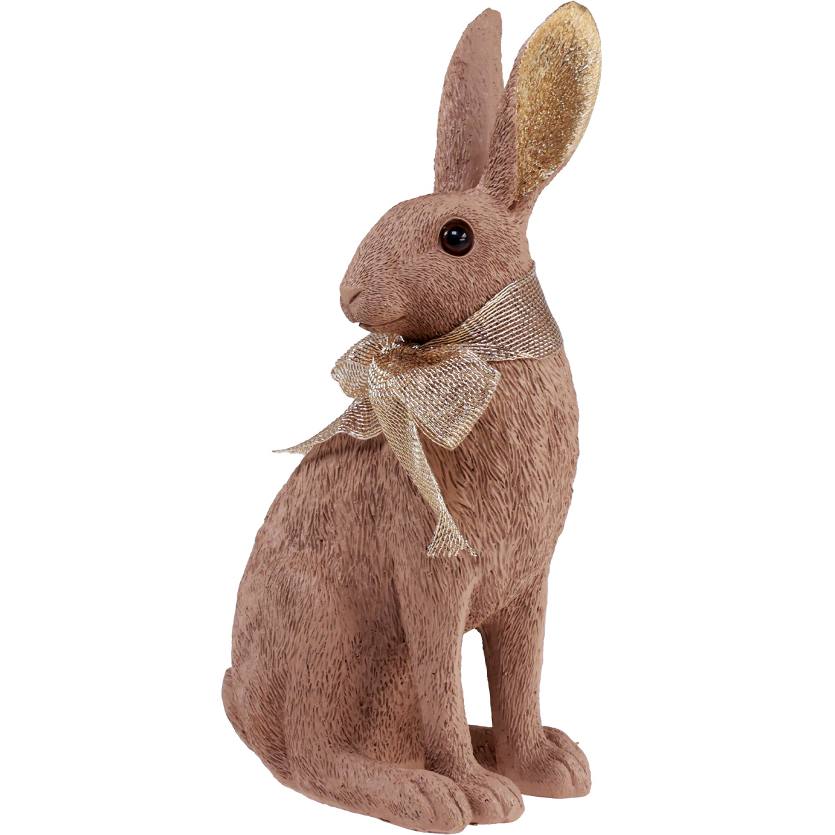 Décoration de lapin de Pâques lapin avec nœud décoration de Pâques marron 25cm
