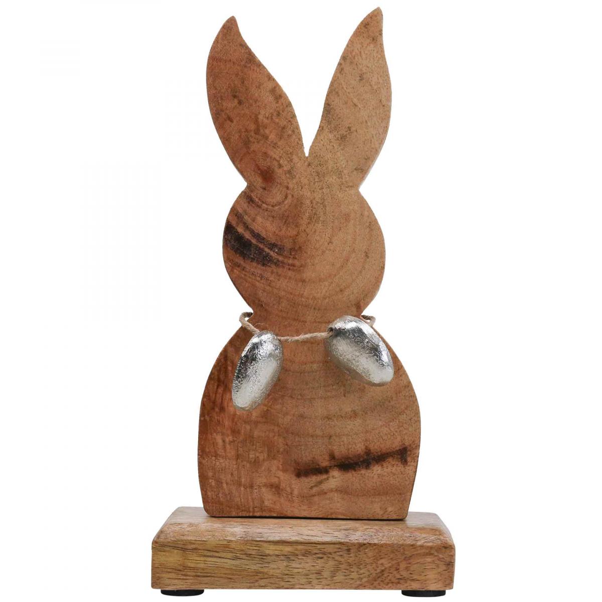 Coniglietto pasquale in legno con uova in metallo, decorazione tavola Pasqua H20.5cm