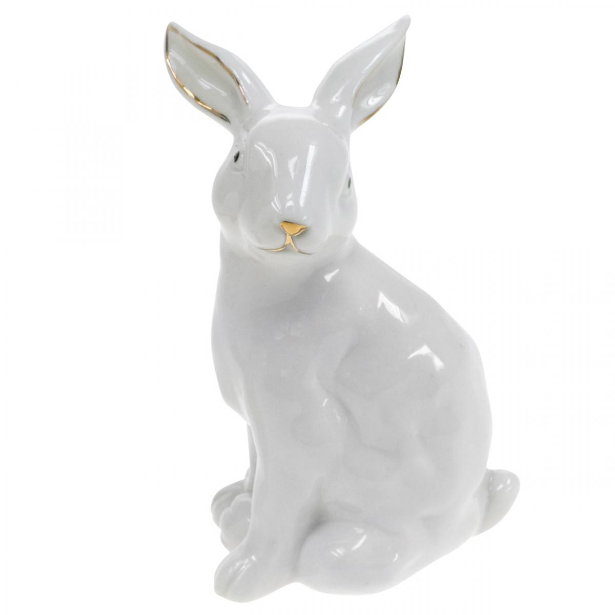 Coniglietto pasquale bianco-dorato, decoro primaverile, figura in ceramica bianca, dorata H13cm 2pz