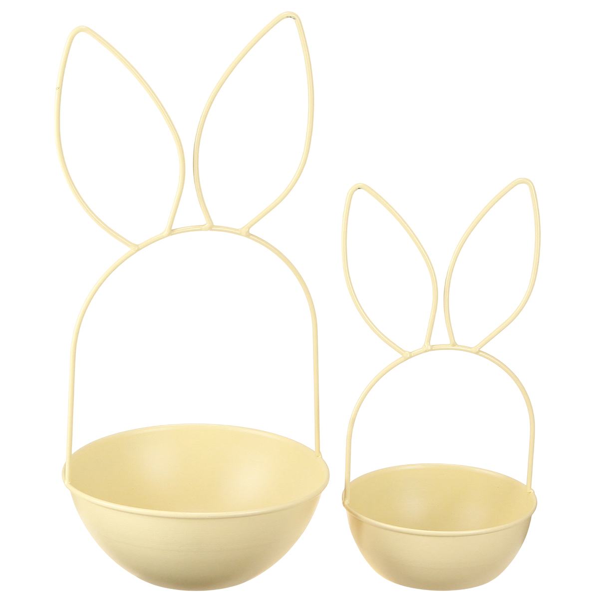 Questo cestino pasquale in una fresca tonalità di giallo, realizzato in robusto metallo, è un vero gioiello tra le decorazioni pasquali. Con le sue caratteristiche orecchie da coniglio, unisce il design contemporaneo alla leggerezza della primavera. Il set è composto da due cestini di diverse dimensioni, perfettamente coordinati per creare un'esposizione armoniosa. Le linee morbide e pulite e il delicato design delle orecchie rendono questi cestini accessori decorativi versatili che si integrano perfettamente in una varietà di stili d'interni: dal classico country al minimalismo moderno.